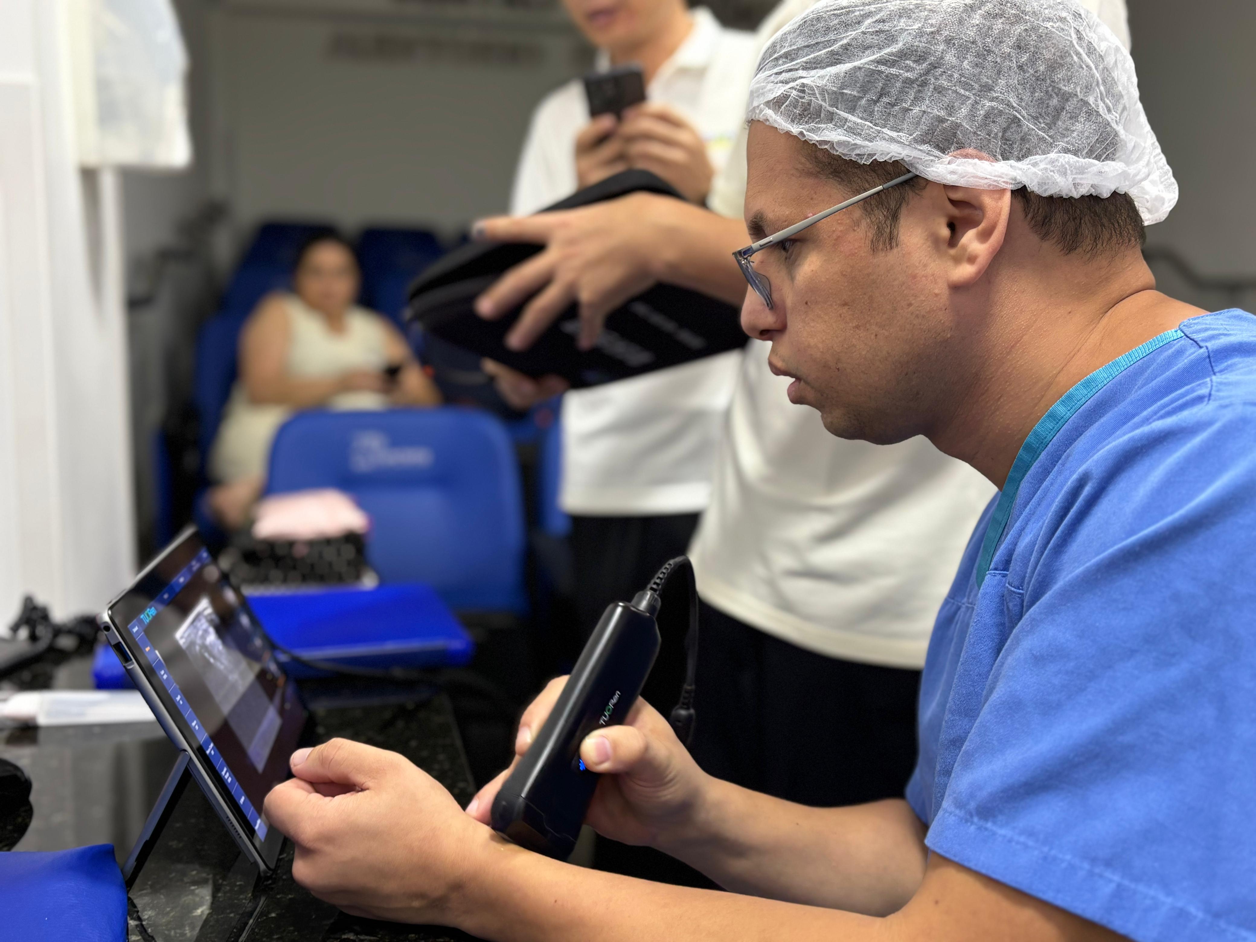 Ainda na visita, Zhang e Yao apresentaram o produto para os anestesistas da instituição, destacando a praticidade, facilidade e agilidade que o aparelho em questão promove para procedimentos cirúrgicos - "Com este aparelho o médico pode rastrear qualquer anormalidade durante o procedimento cirúrgico, além de ter uso também para o dia a dia das enfermarias do hospital", destacou Zhang Yu.
