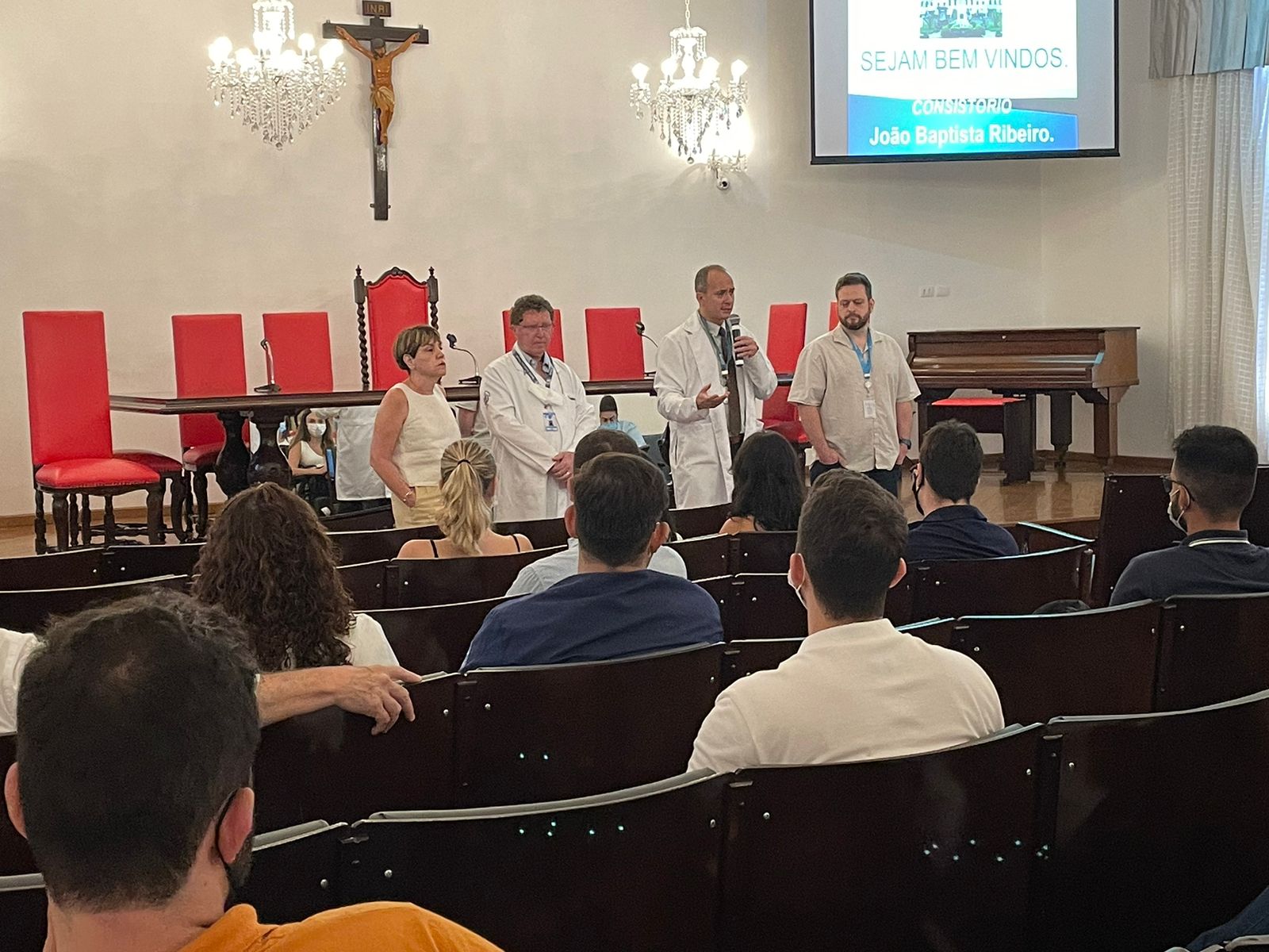 No dia 2/3, a Santa Casa de Santos reuniu no consistório cerca de cem médicos para a aula inaugural que marca o início do período de Residência Médica.