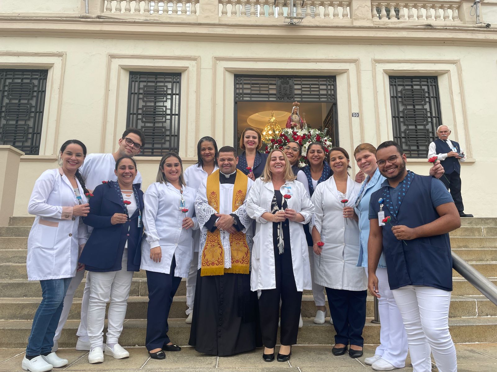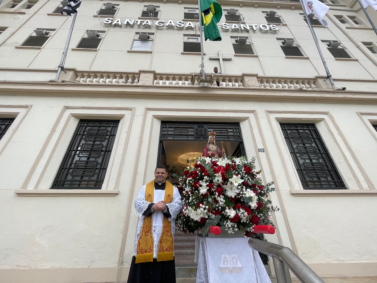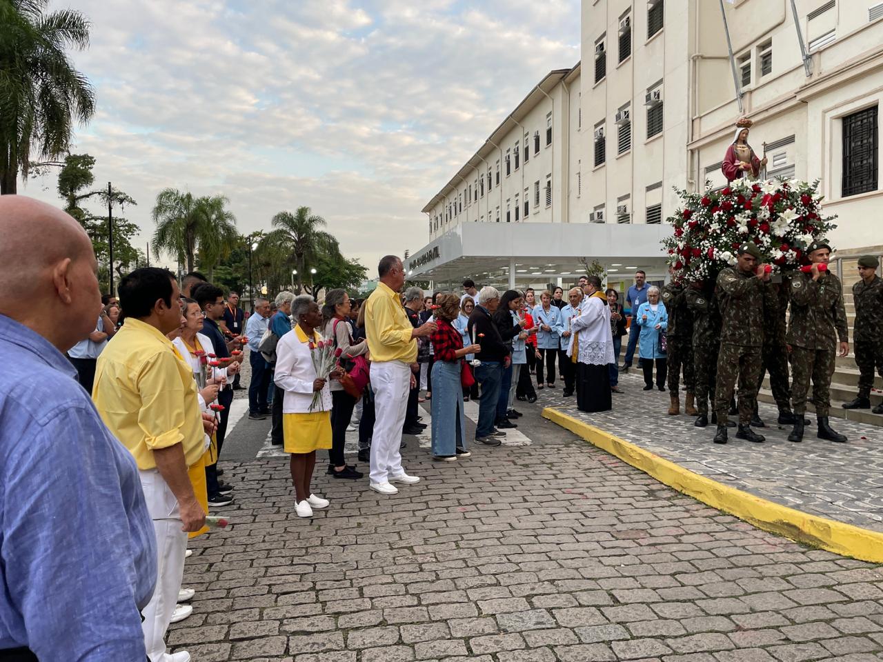 No período da tarde, os voluntários fizeram a distribuição de rosas aos enfermos e, às 16h30, aconteceu a procissão luminosa, saindo da frente da Santa Casa de Santos rumo à Capela Santa Isabel.