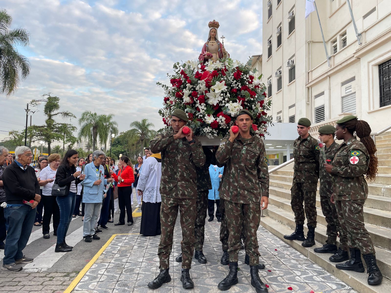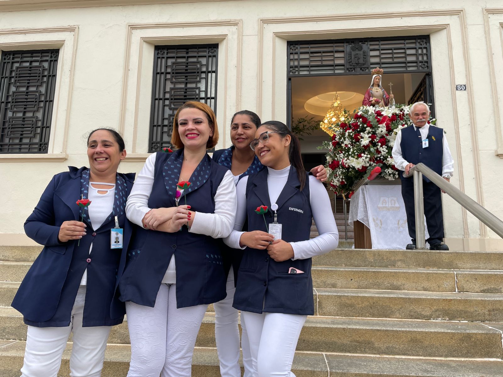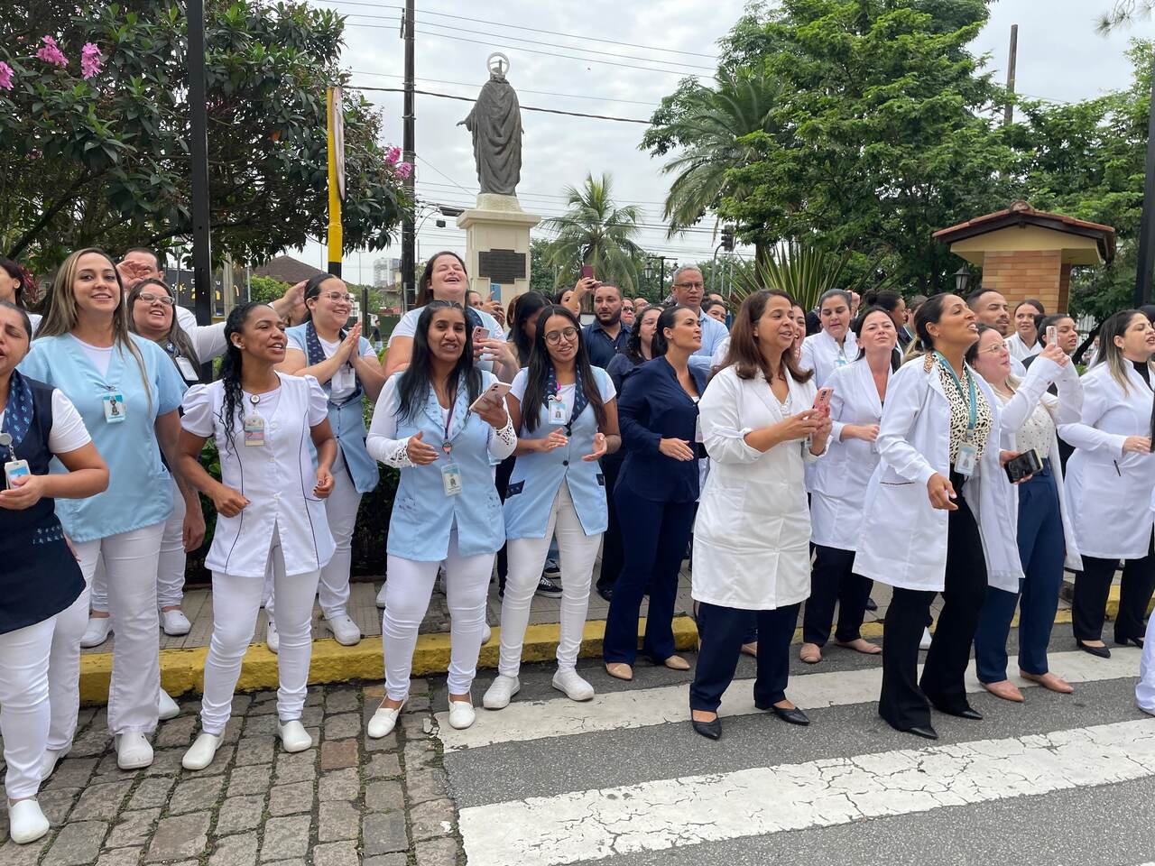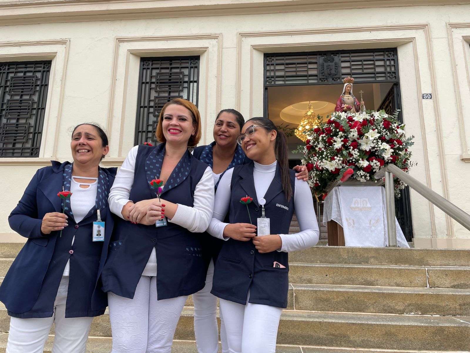 No período da tarde, os voluntários fizeram a distribuição de rosas aos enfermos e, às 16h30, aconteceu a procissão luminosa, saindo da frente da Santa Casa de Santos rumo à Capela Santa Isabel.
