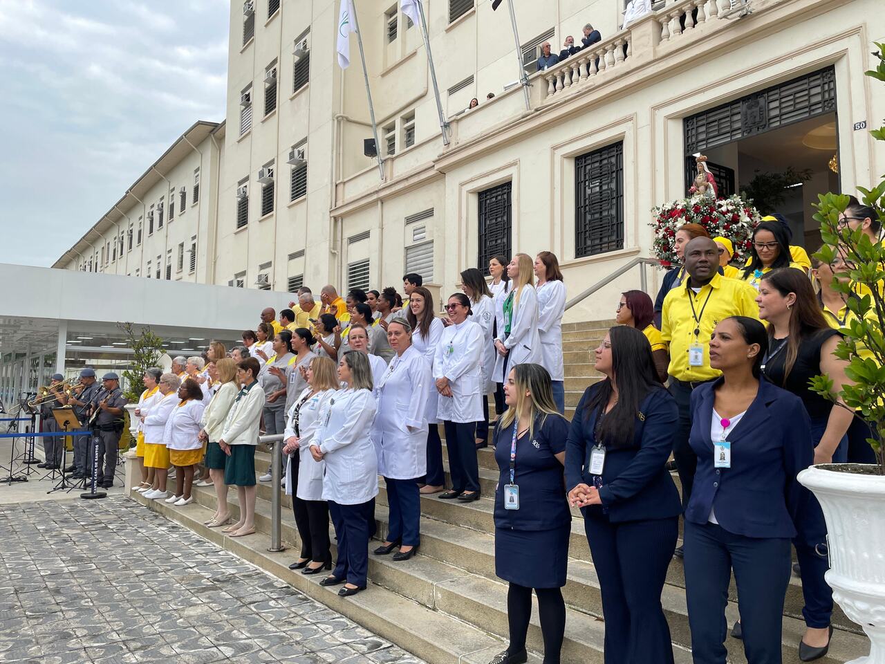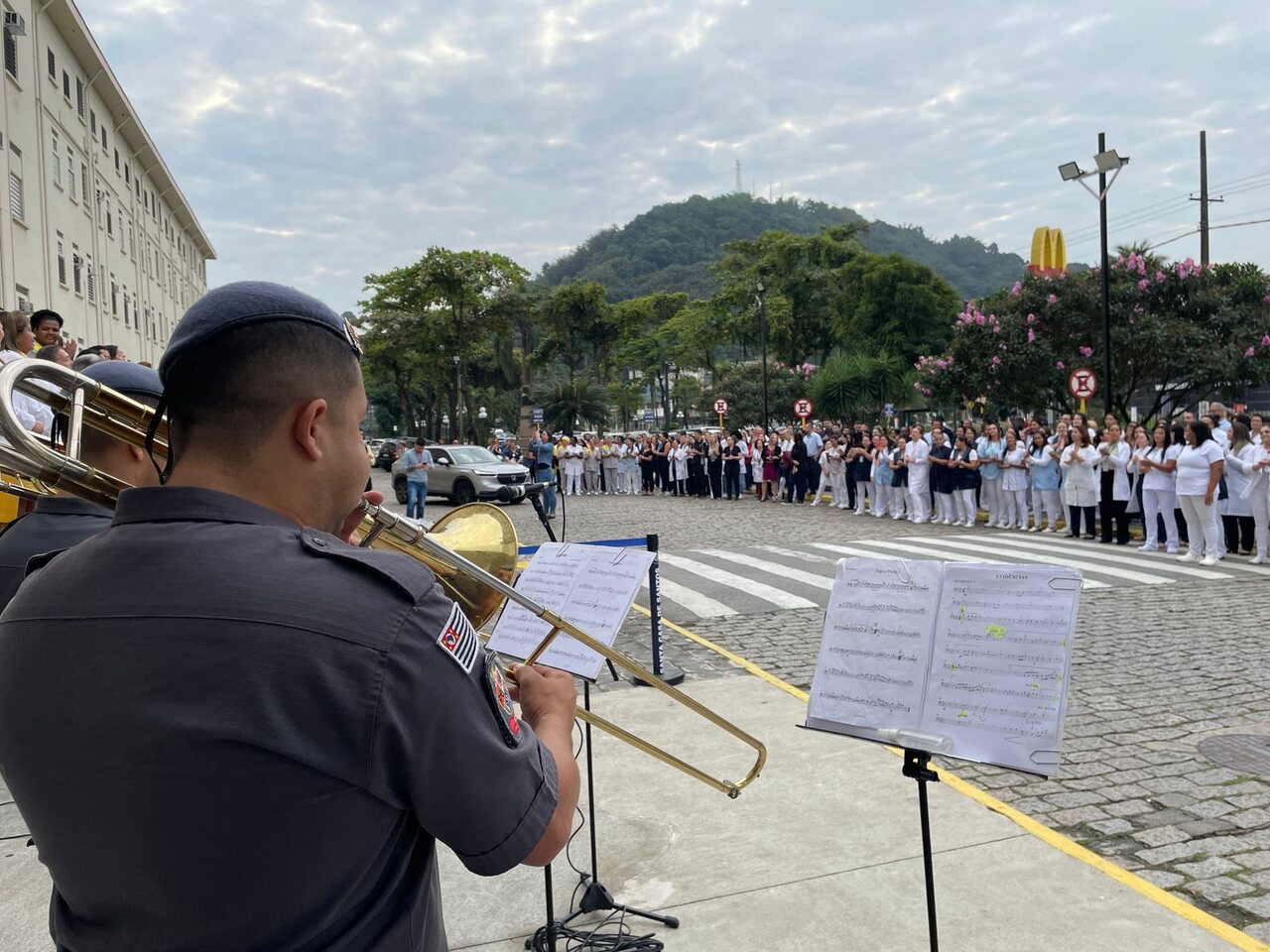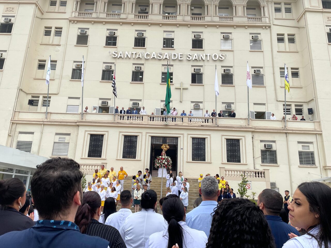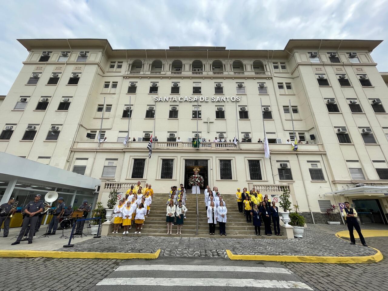 O Dia de Santa Isabel, padroeira das Santas Casas, foi celebrado com programação especial na Santa Casa de Santos, seguindo a tradição da instituição. Às 9h, o público se reuniu em frente às escadarias para o Hasteamento das Bandeiras e prestigiar a Banda Regimental de Música do CPI 6, que fez uma excelente apresentação com repertório de MPB e animou todos os presentes.