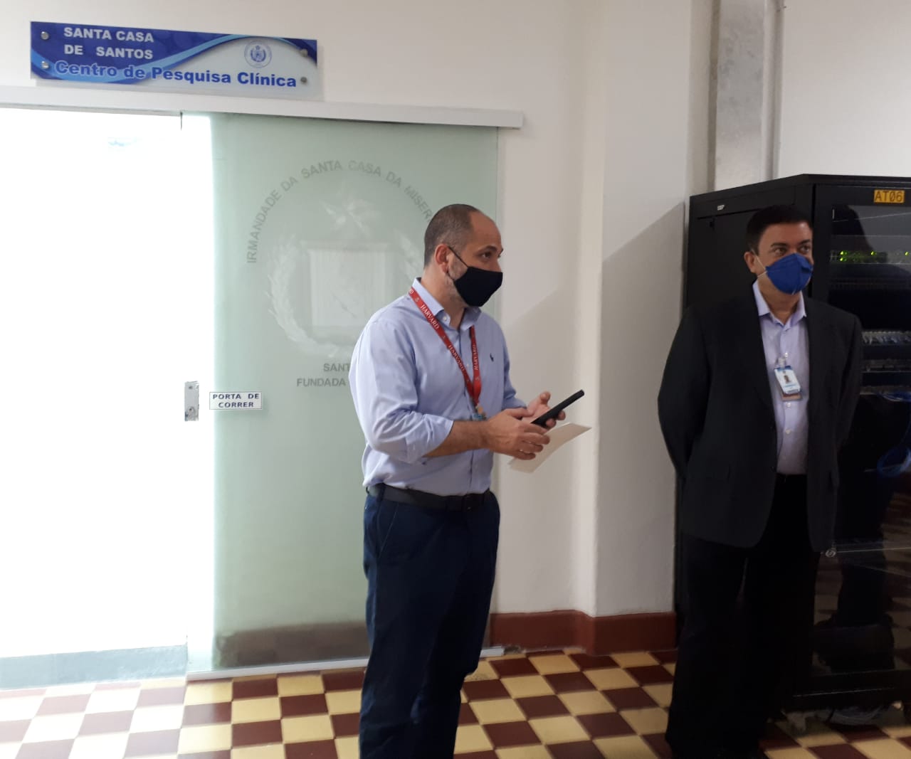 Estiveram presentes o superintendente Augusto Capodicasa, representando o provedor Ariovaldo Feliciano, o Diretor Médico Dr. Rogério Dedivitis, o Diretor Clínico Dr. Constantino Kader Conde, Dr. André Sementilli e representantes da empresa Science Valley, parceira do novo Centro de Pesquisa. O espaço fica no 2º andar ala H da Santa Casa de Santos e conta com 3 salas, de Coordenação, Auditoria e Farmácia Clínica.
