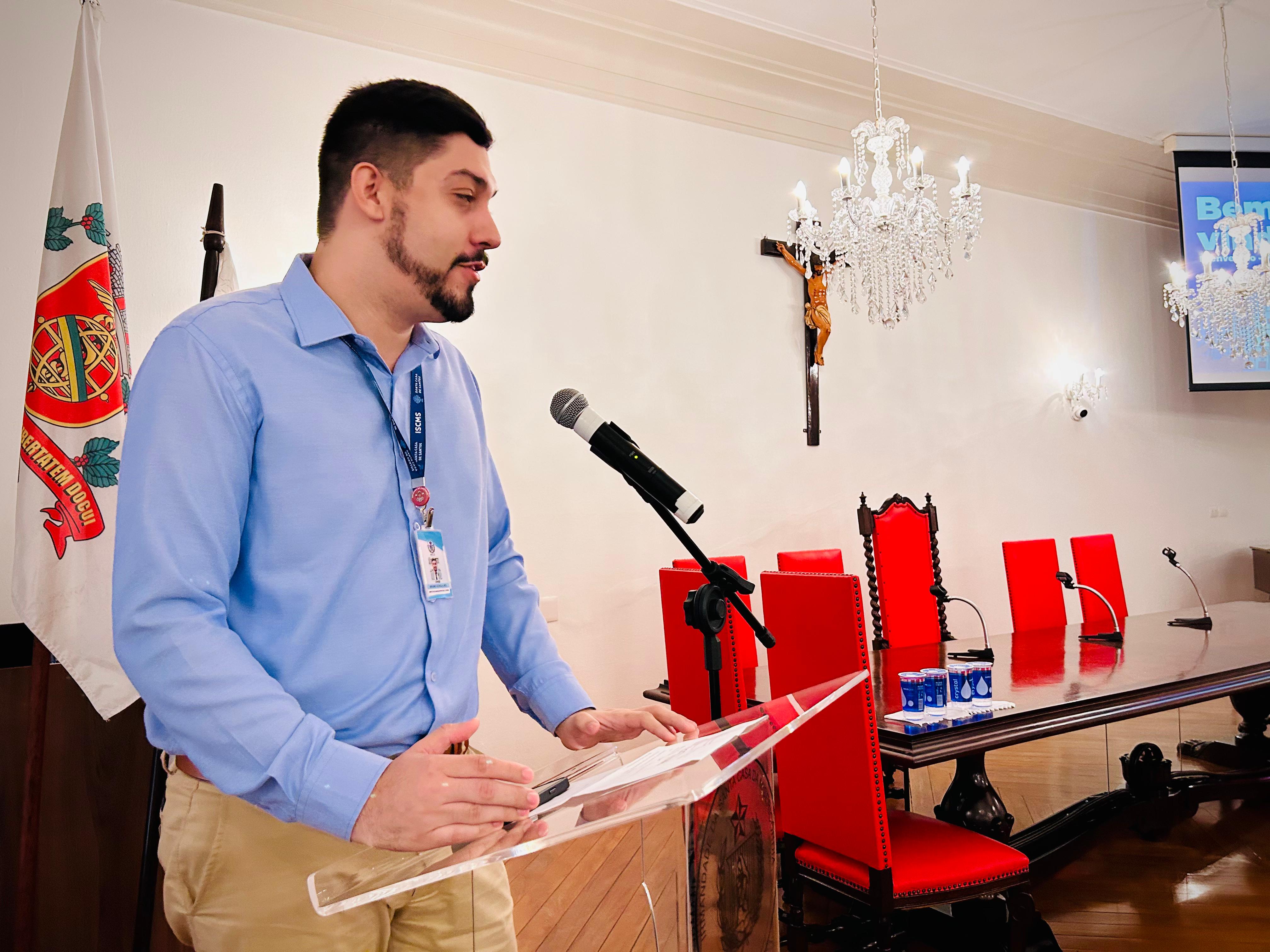 O evento teve início com a apresentação do mestre de cerimônias Luiz Lima do Departamento de Recursos Humanos, seguida pelo discurso de boas-vindas do Diretor de Infraestrutura e Apoio, Bruno Dantas, reforçando o compromisso da instituição com o desenvolvimento sustentável na área da saúde.