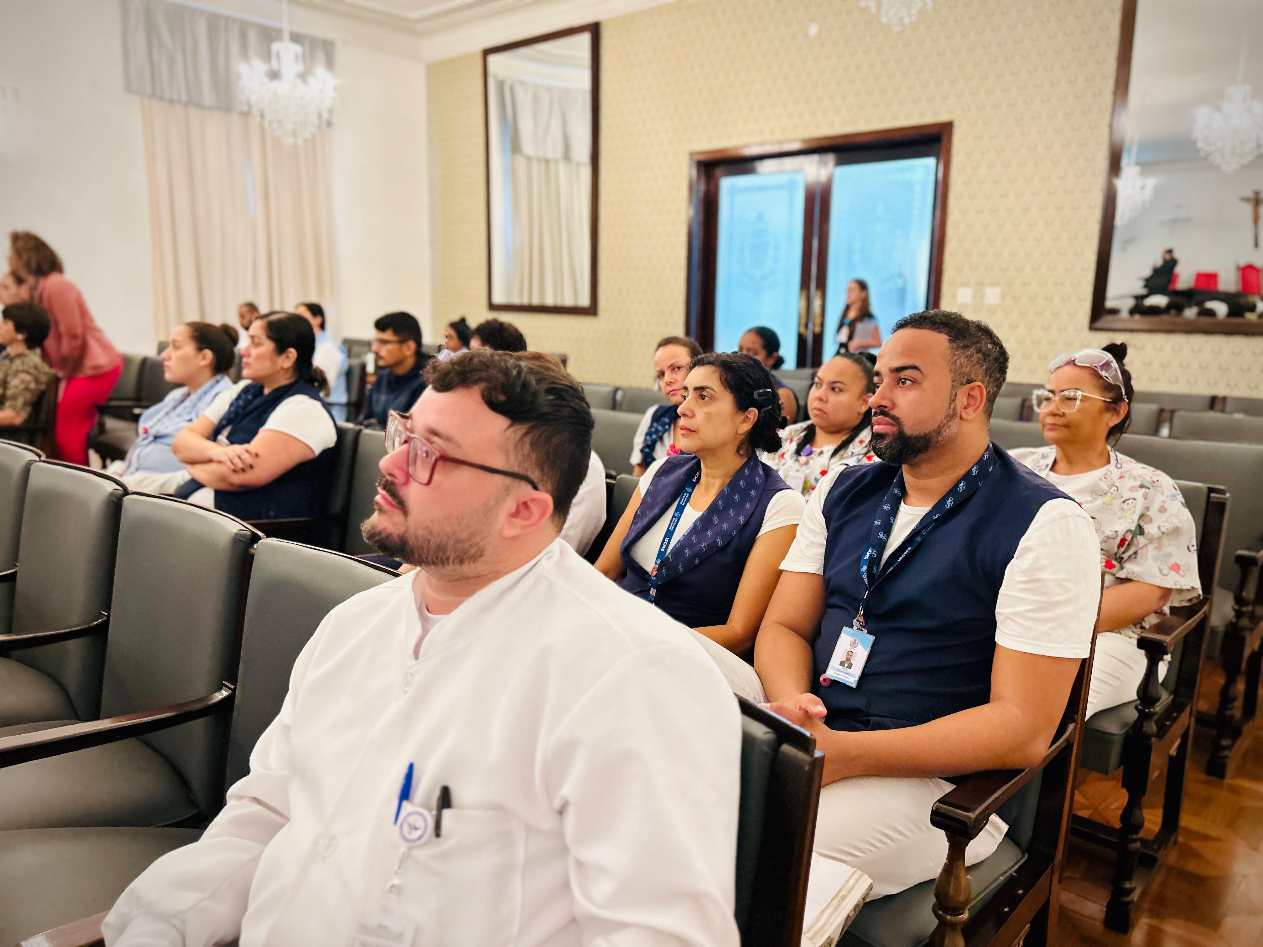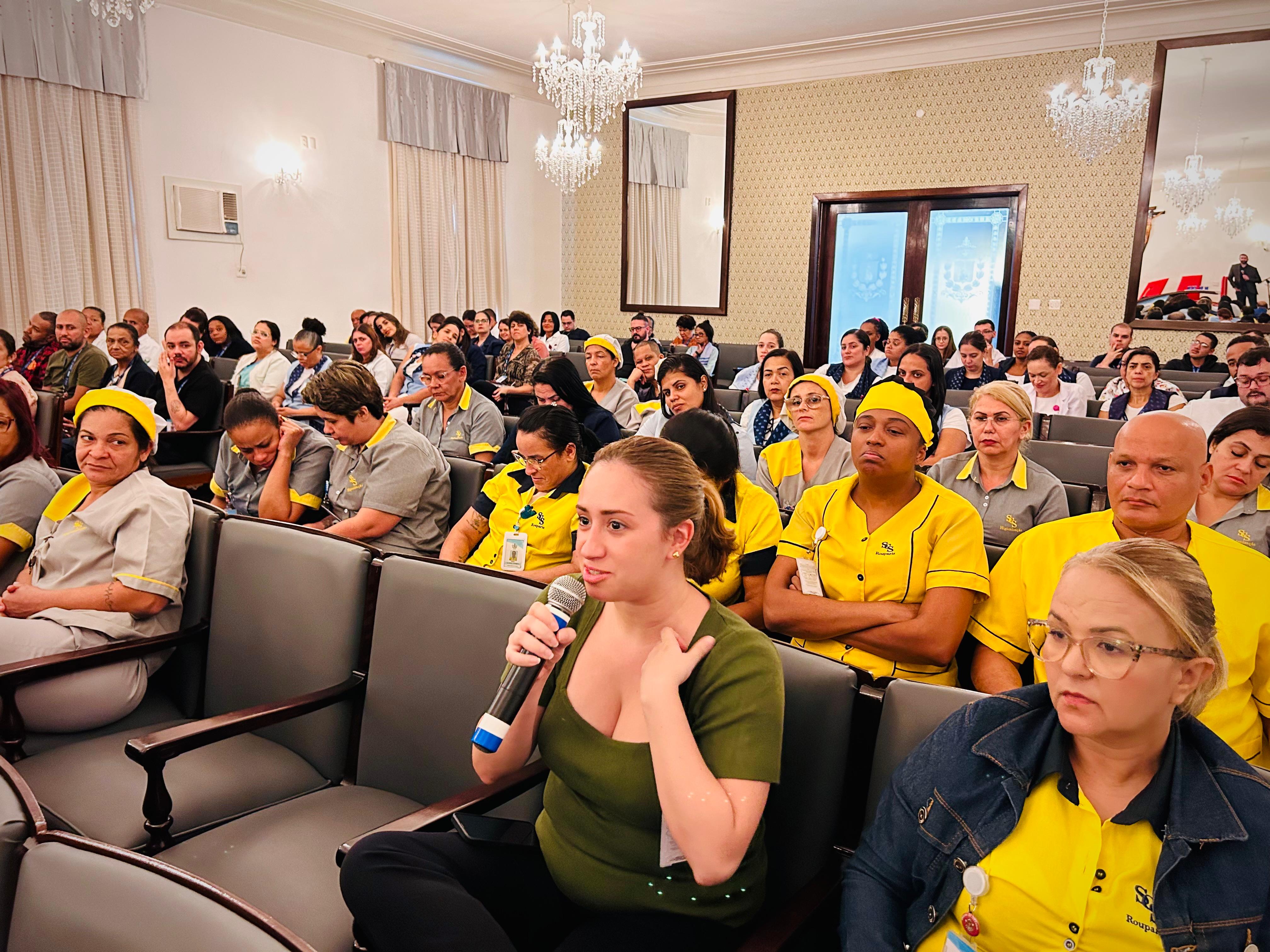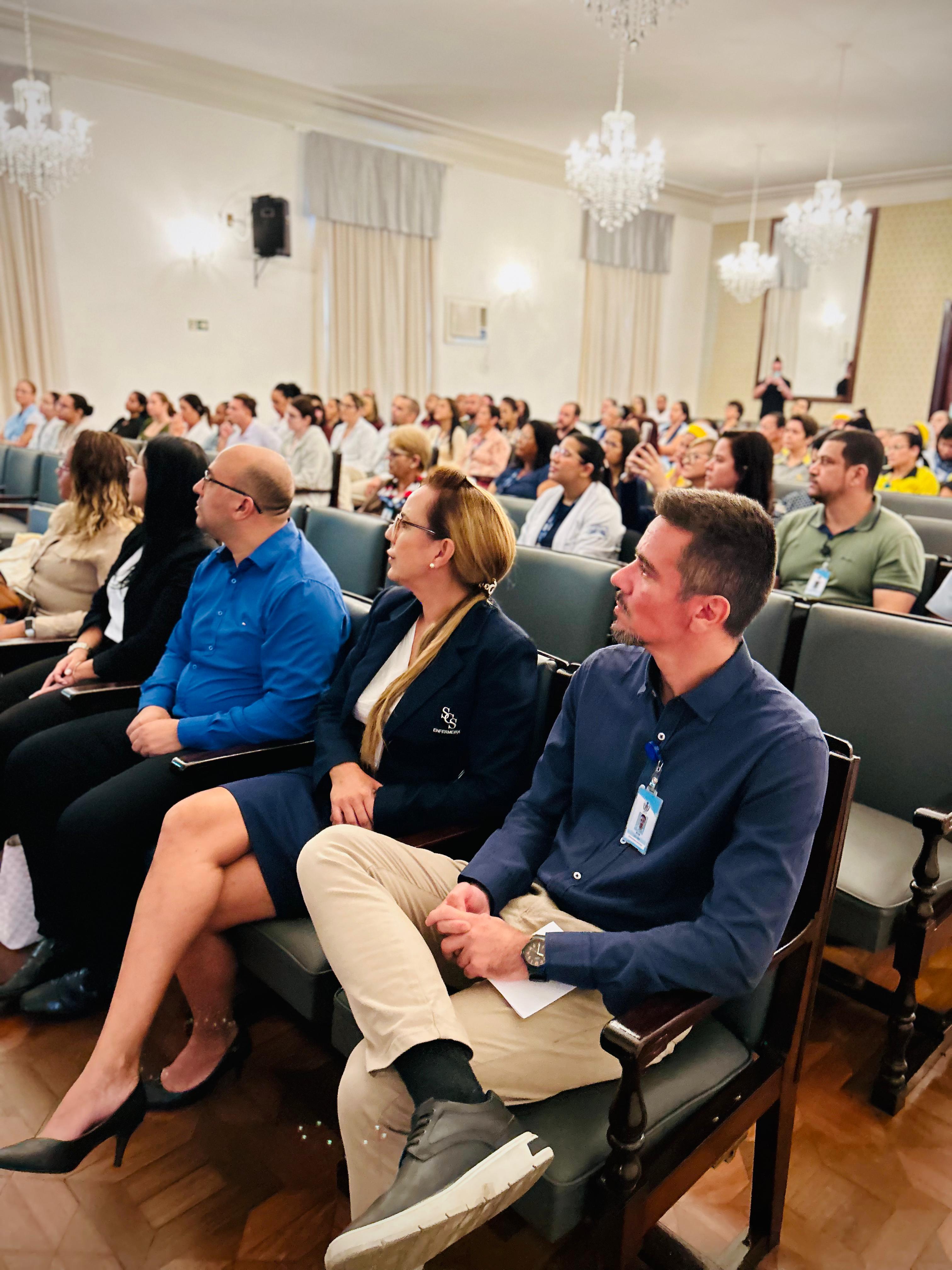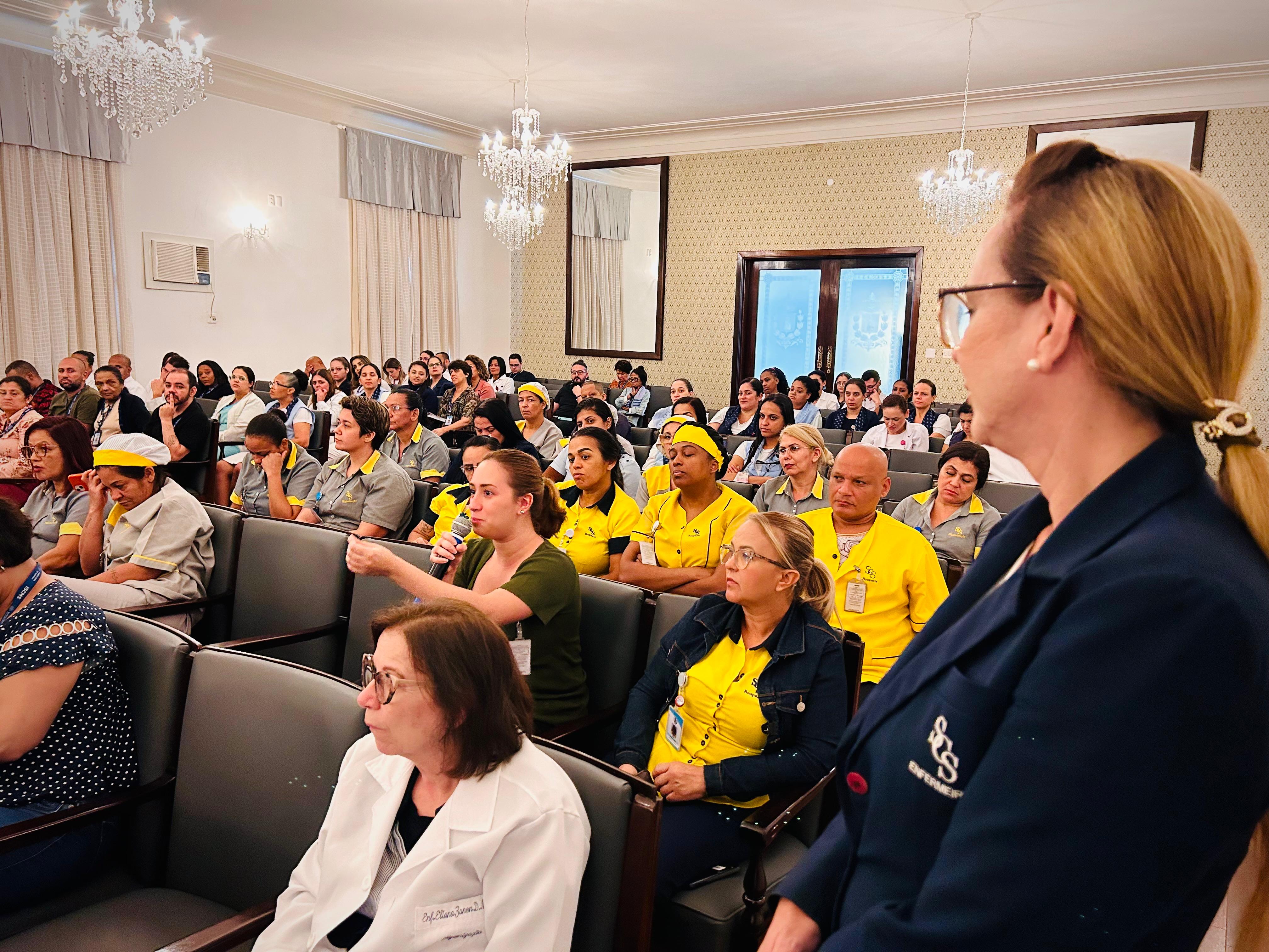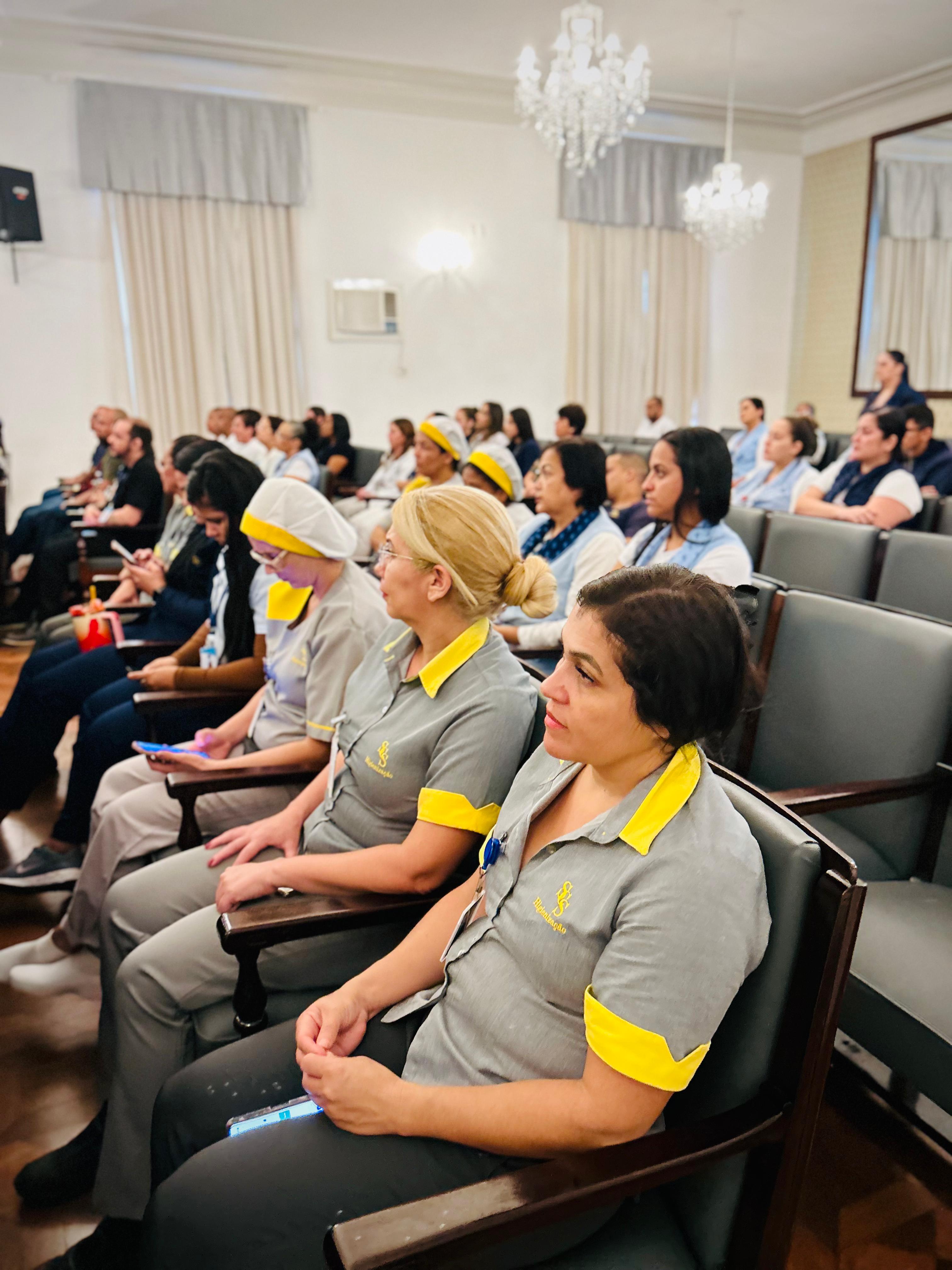 Para finalizar, a equipe do GRSS preparou uma surpresa para os colaboradores: um sorteio especial em que alguns assentos do consistório continham vale-brindes. Os vencedores foram presenteados com pequenos vasos de suculentas, simbolizando o compromisso da Santa Casa de Santos com a sustentabilidade e a preservação ambiental.