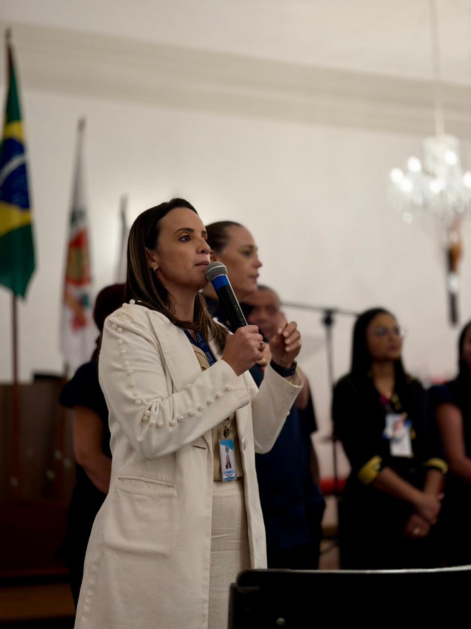 Na sequência, a gestora da Enfermagem, Enfª. Rita Rocha, deu as boas-vindas ao público e ressaltou a importância das boas práticas de enfermagem no dia a dia da assistência. Rita enfatizou ainda que cursos, treinamentos e simpósios ampliam competências, fortalecem a atuação profissional e impactam diretamente na qualidade do cuidado prestado.