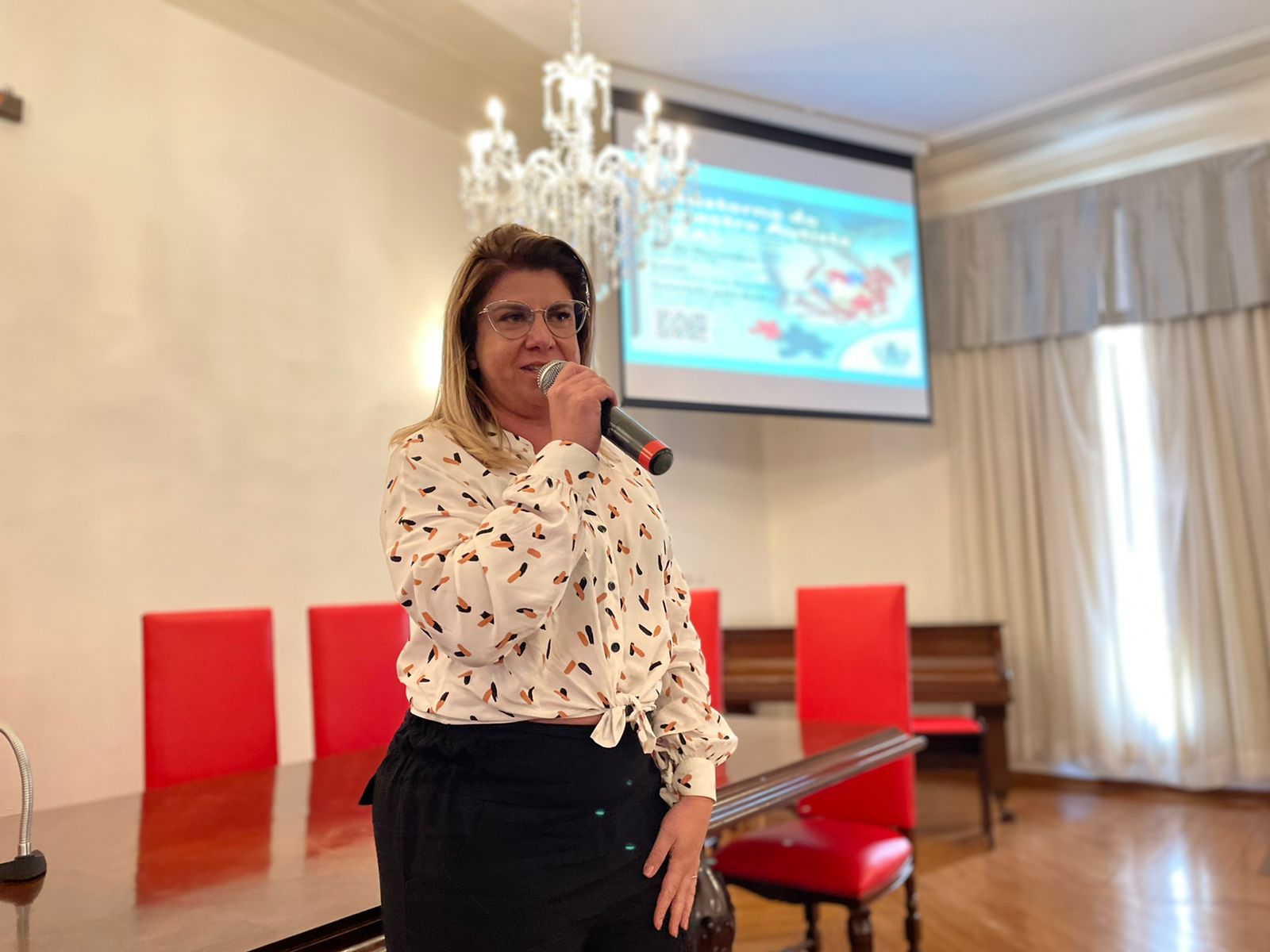 Em seguida, a fonoaudióloga, Lília Carmona Sophie Sgarbi, deu continuidade à programação e explanou mais sobre os comportamentos típicos das crianças com TEA, e também falou das incidências, apresentou dados técnicos e explicou como deve ser feito o acolhimento familiar.