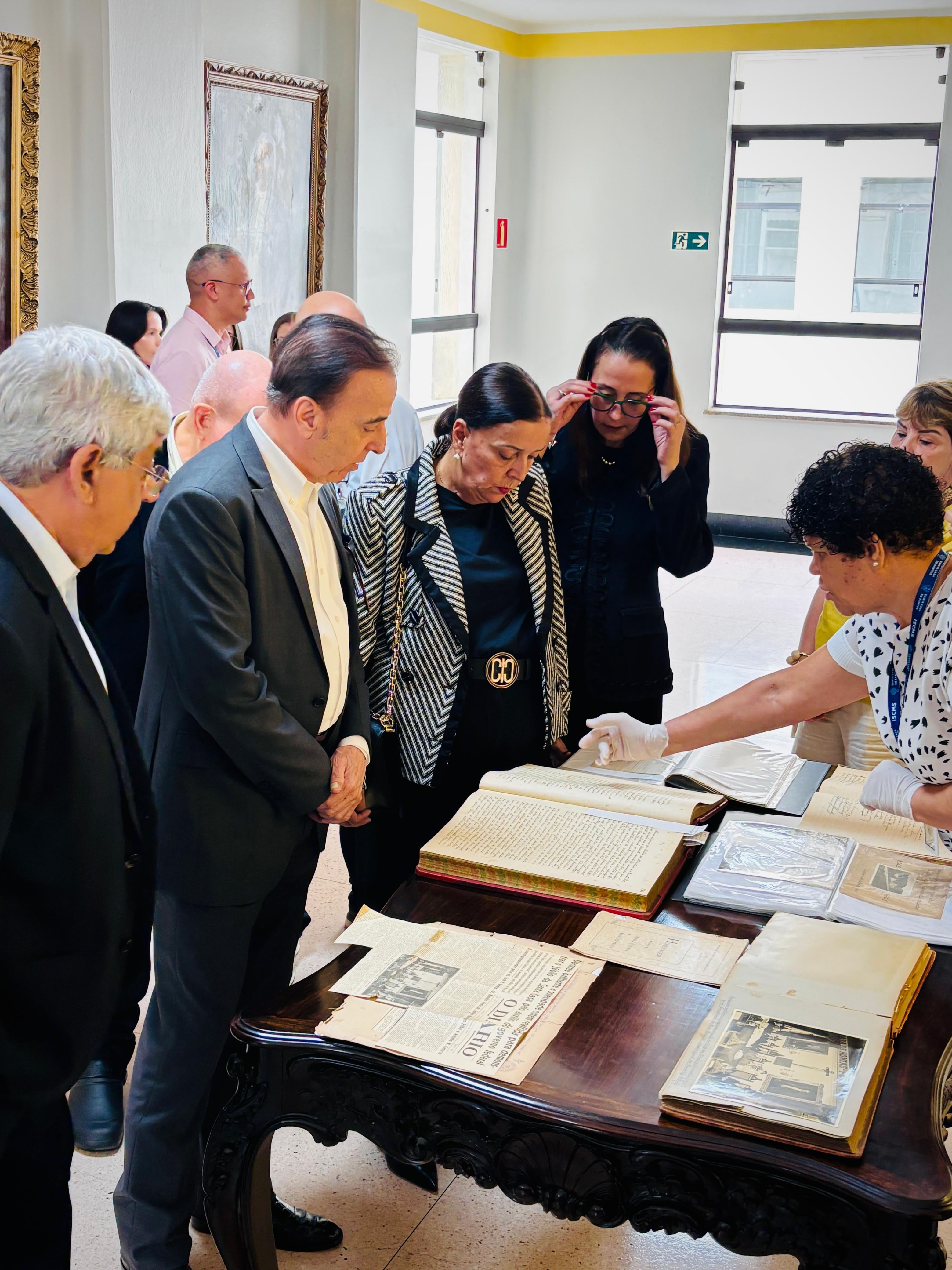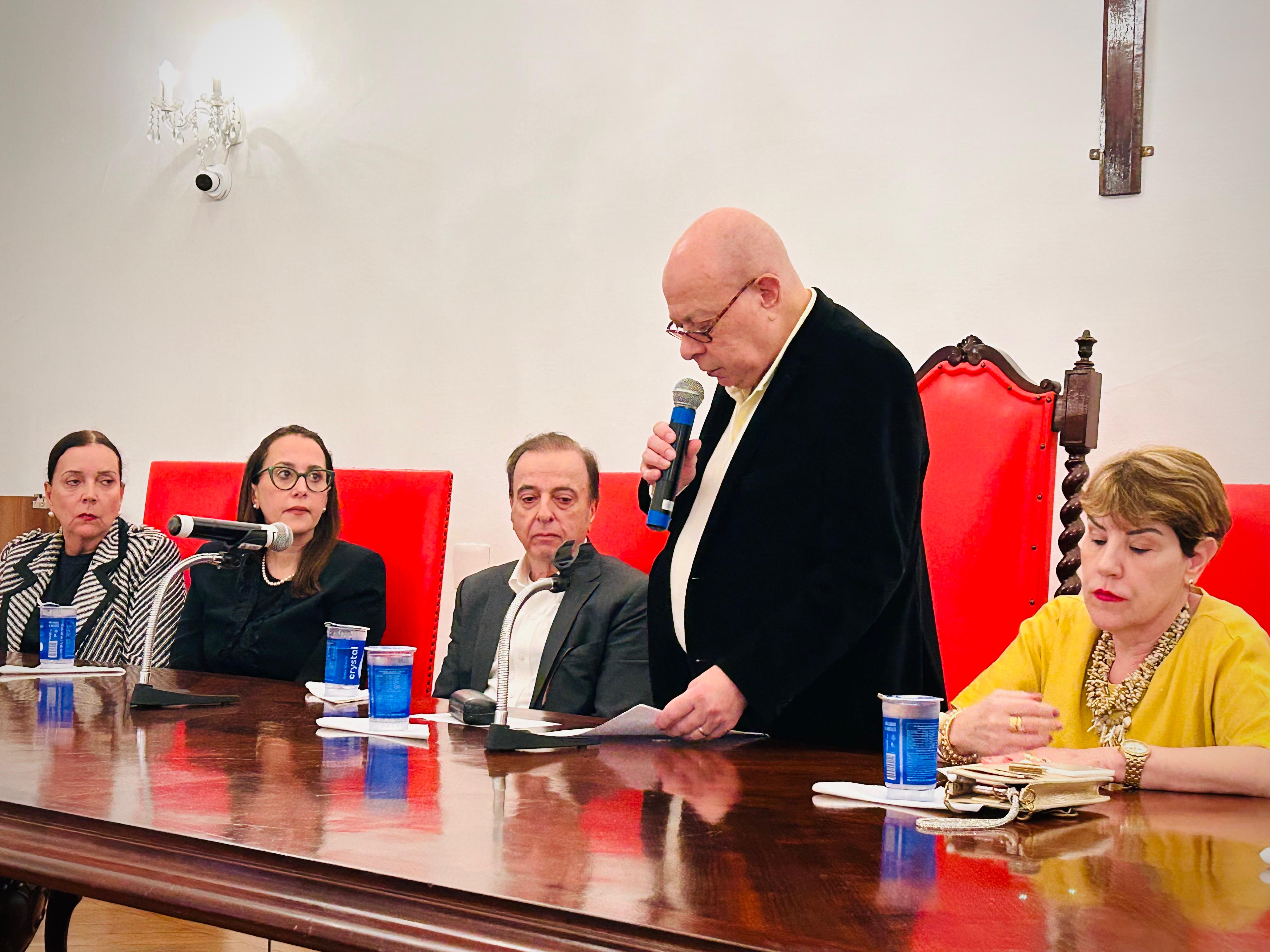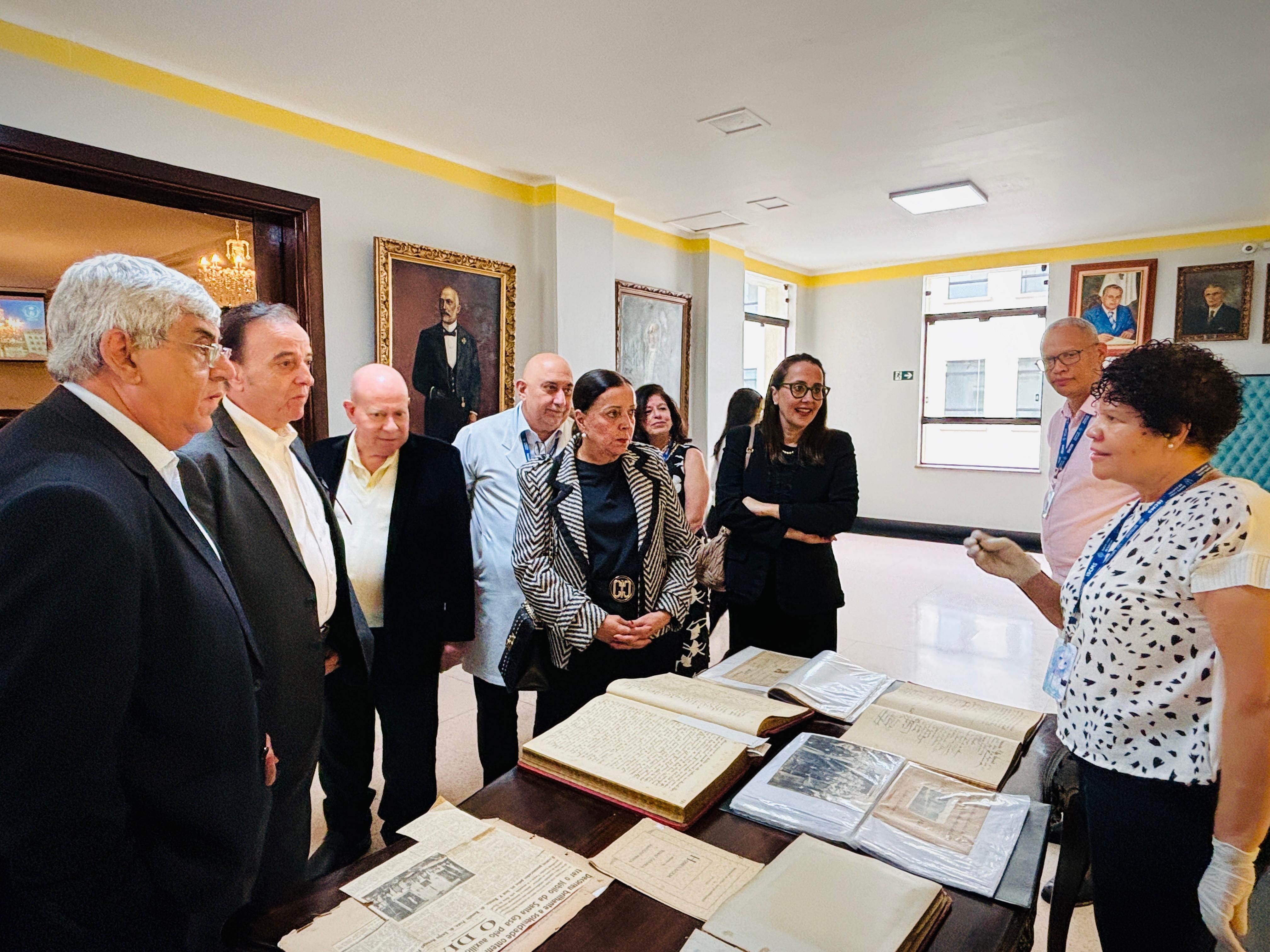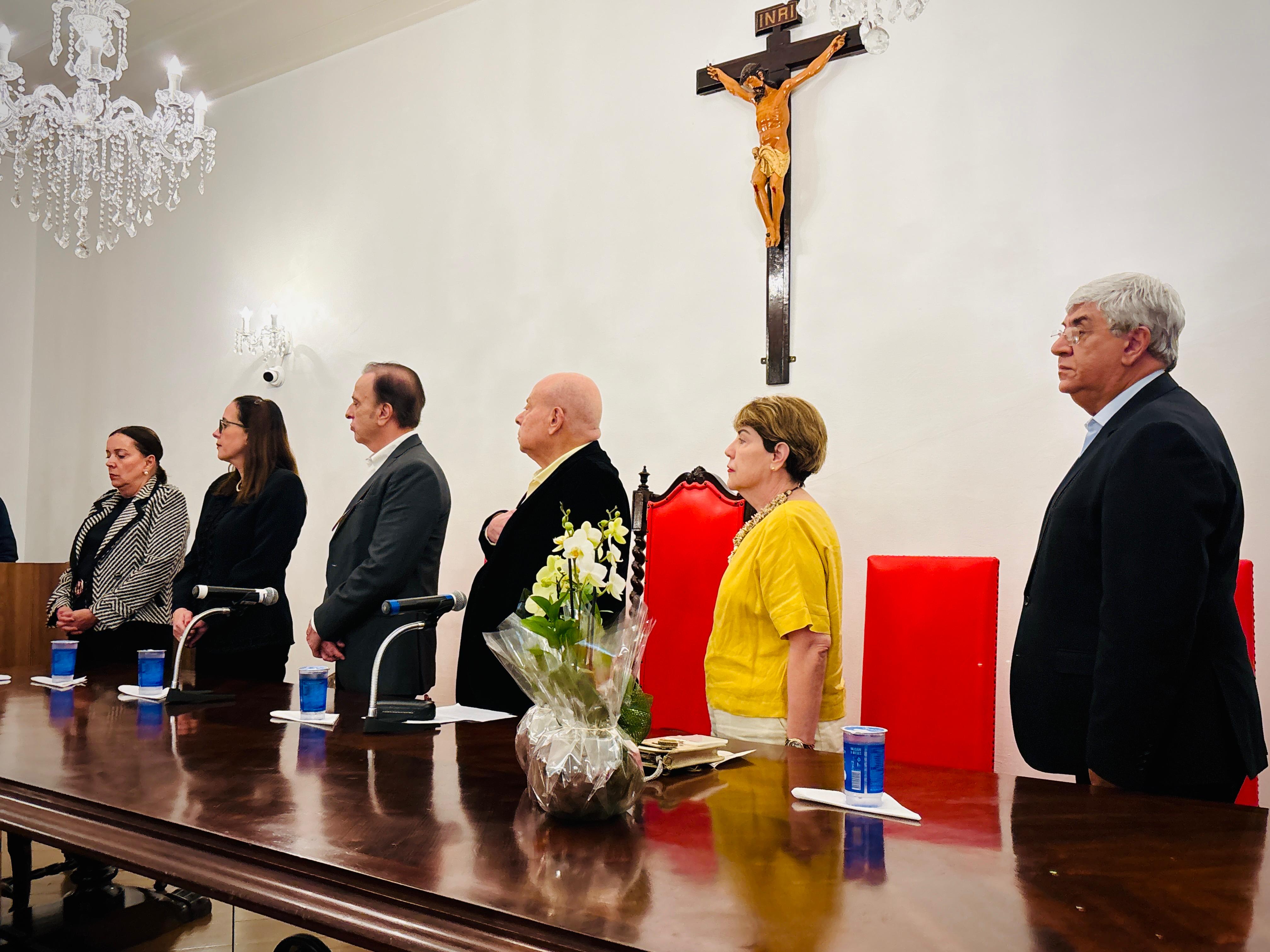Henrique Prata foi recebido pelo Provedor Ariovaldo Feliciano, pelo vice-provedor Carlos Teixeira Filho, pelo Presidente do Conselho Geral Orlando Viscardi Jr, pelo 1º Tesoureiro da Mesa Administrativa Antonio Carvalho e pela Presidente da Comissão de Controle da Qualidade, Eliana Lopes Feliciano.