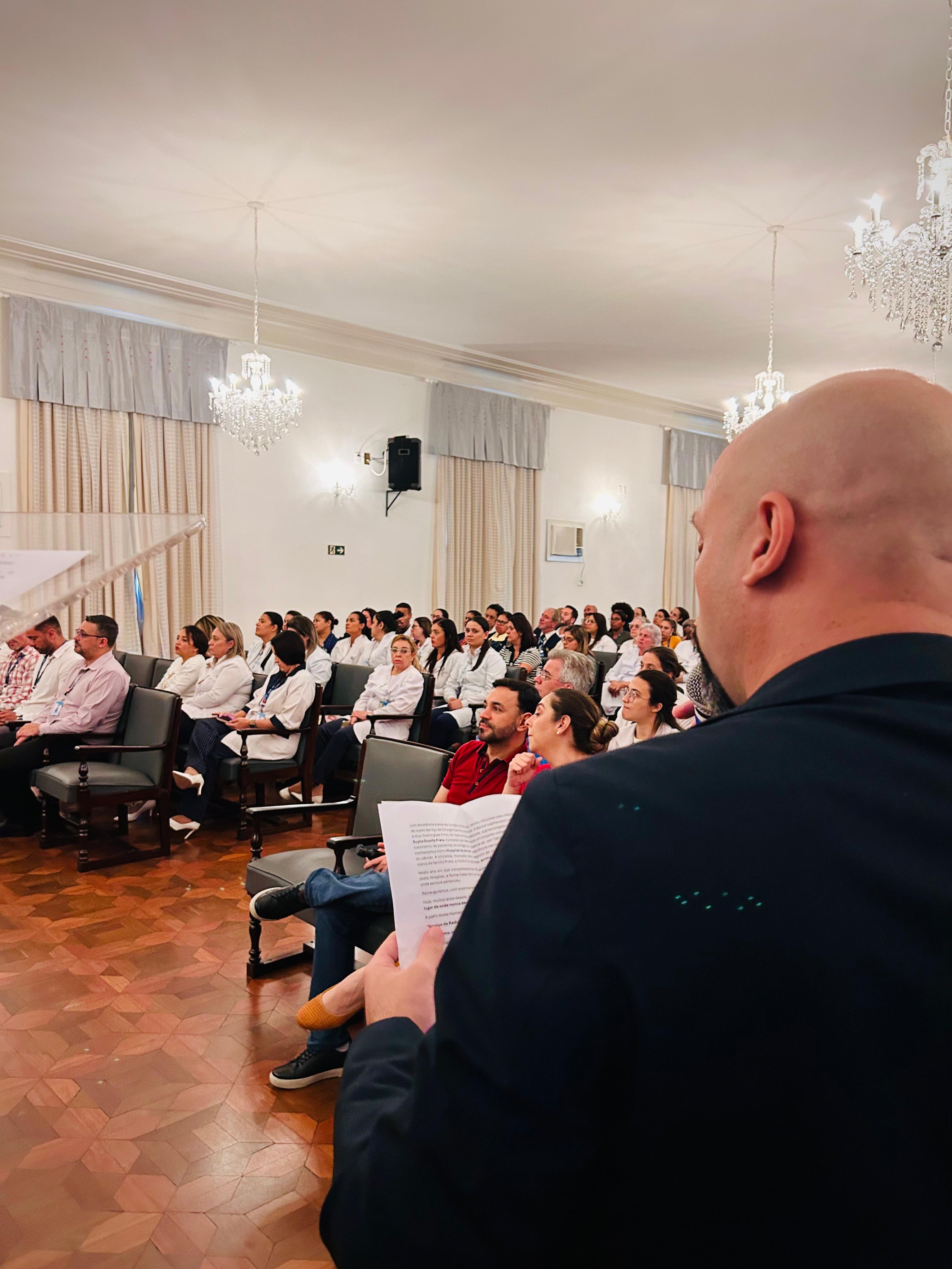 Estavam presentes na cerimônia: O Diretor Administrativo Eduardo Pimentel, o Diretor Clínico Constantino Kader Conde, o Diretor Comercial e Financeiro Fábio Luiz Isoldi, o Diretor de Infraestrutura e Apoio Bruno Dantas Gonçalves, o Diretor de Inovação e Tecnologia Cristiano Oliveira de Sousa, o Diretor Jurídico Aldo Santos Pinto, o Diretor Técnico Alex Gonçalves Macedo, o Vice-Diretor Clínico Dr. Eloi Moccellin, o Assessor Especial da Provedoria Dr. Daniel de Carvalho Lustoza, o Assessor Técnico Executivo Marcio de Castro Lourenço das Neves e a médica coordenadora de Desenvolvimento Estudantil da Diretoria Clínica, Drª. Rosilene Morales.
