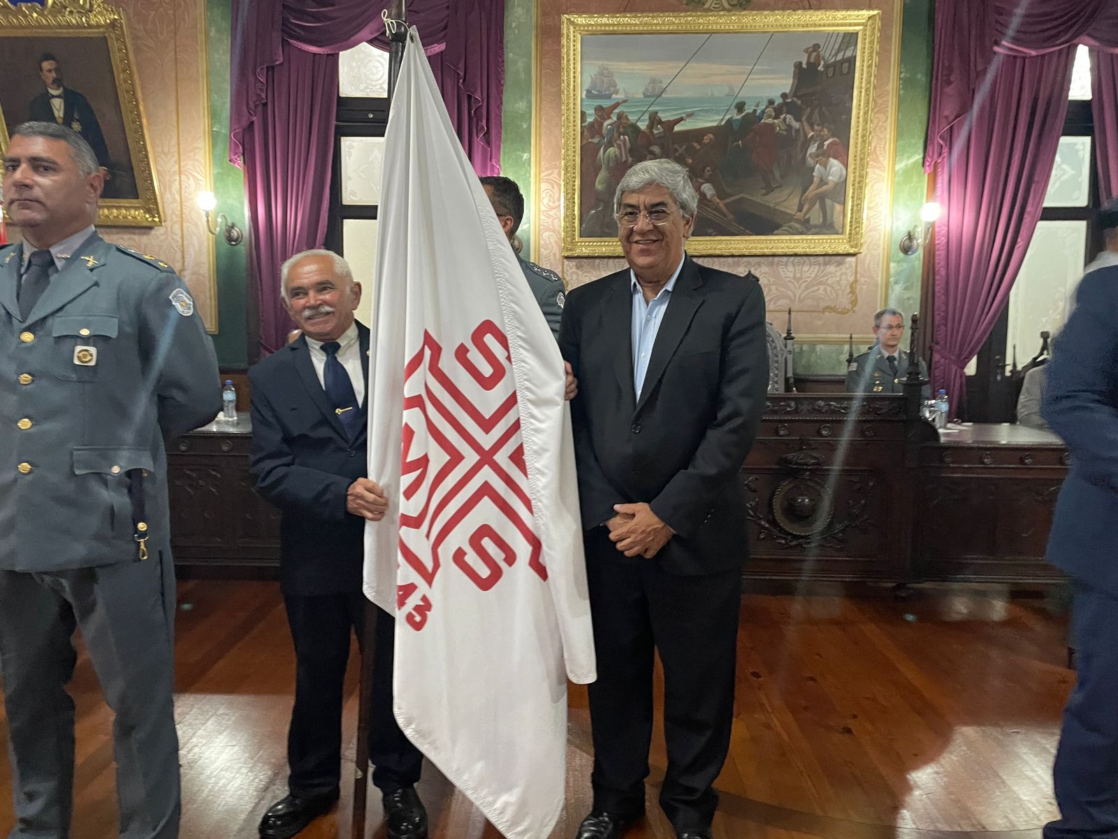 O colaborador José Rabelo Sobrinho, que trabalha há mais de 38 anos na Irmandade, levou a bandeira da Santa Casa para receber a medalha.