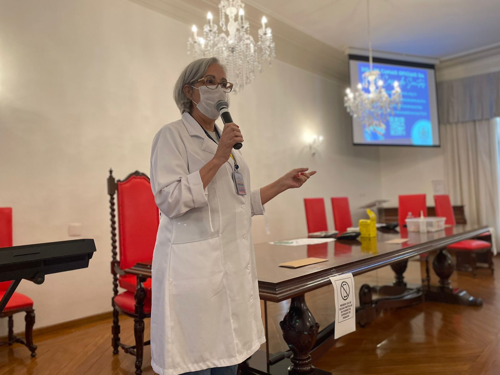Em seguida a Enfª. Márcia Torelli, do Núcleo de Segurança do Paciente, destacou que o tema da palestra é o desafio global da OMS em 2022, e falou da importância do comprometimento de todos os envolvidos no processo de medicação.