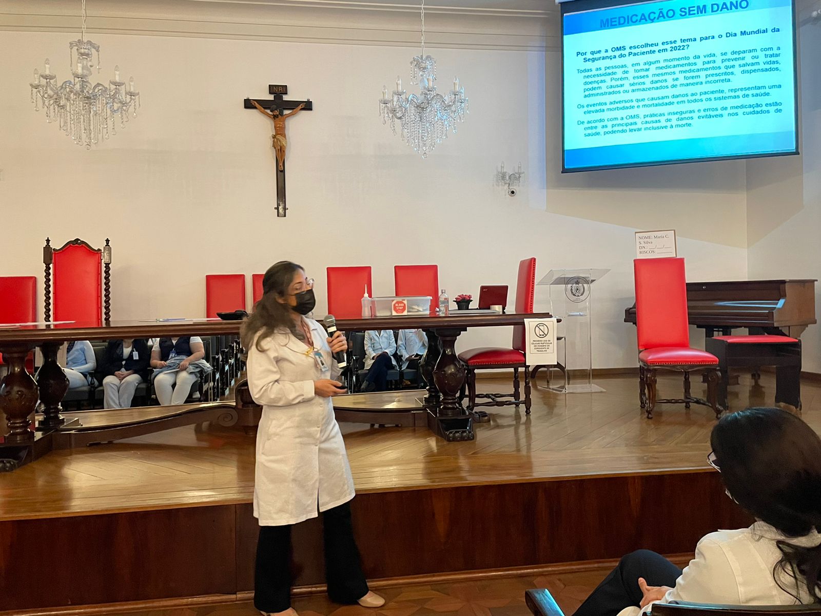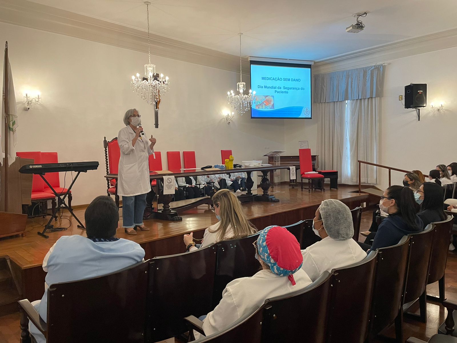 O Núcleo de Segurança do Paciente da Santa Casa de Santos promoveu nesta quinta, 29/9, a palestra “Medicação sem danos”, em alusão ao Dia Mundial de Segurança do Paciente, celebrado em 17/9. O tema foi escolhido de acordo com a campanha da Organização Mundial da Saúde – OMS, em reconhecimento à complexidade da prevenção e redução de danos relacionados ao uso de medicamentos.