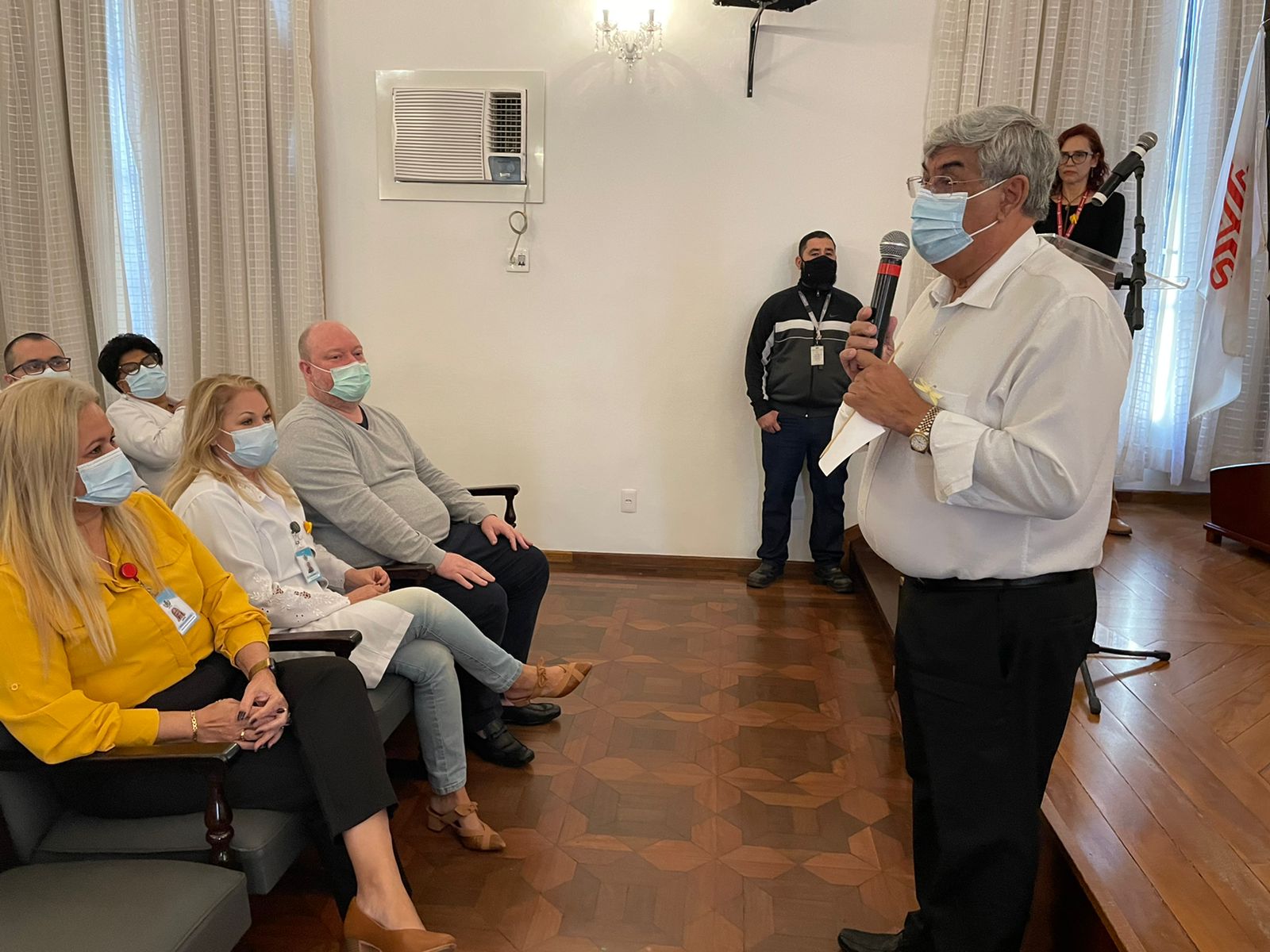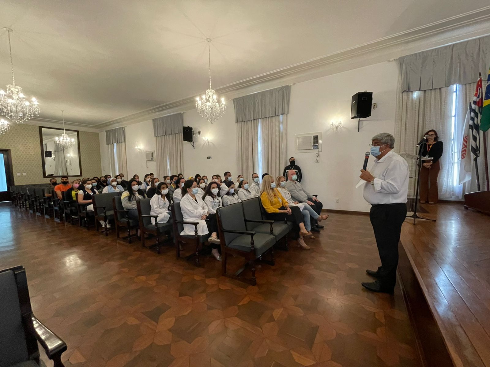 A programação do primeiro dia da Semana Amarela contou com palestras do Dr. Bruno Reis, Chefe do Serviço de Psiquiatria da Santa Casa; da Psicóloga Rita Russo, Coordenadora do Serviço de Psicologia; e apresentação do Enfº. Júlio Sabino, do Setor de Medicina do Trabalho, que falou sobre o grupo de apoio criado pelo serviço, especialmente para o cuidado da saúde mental do colaborador.