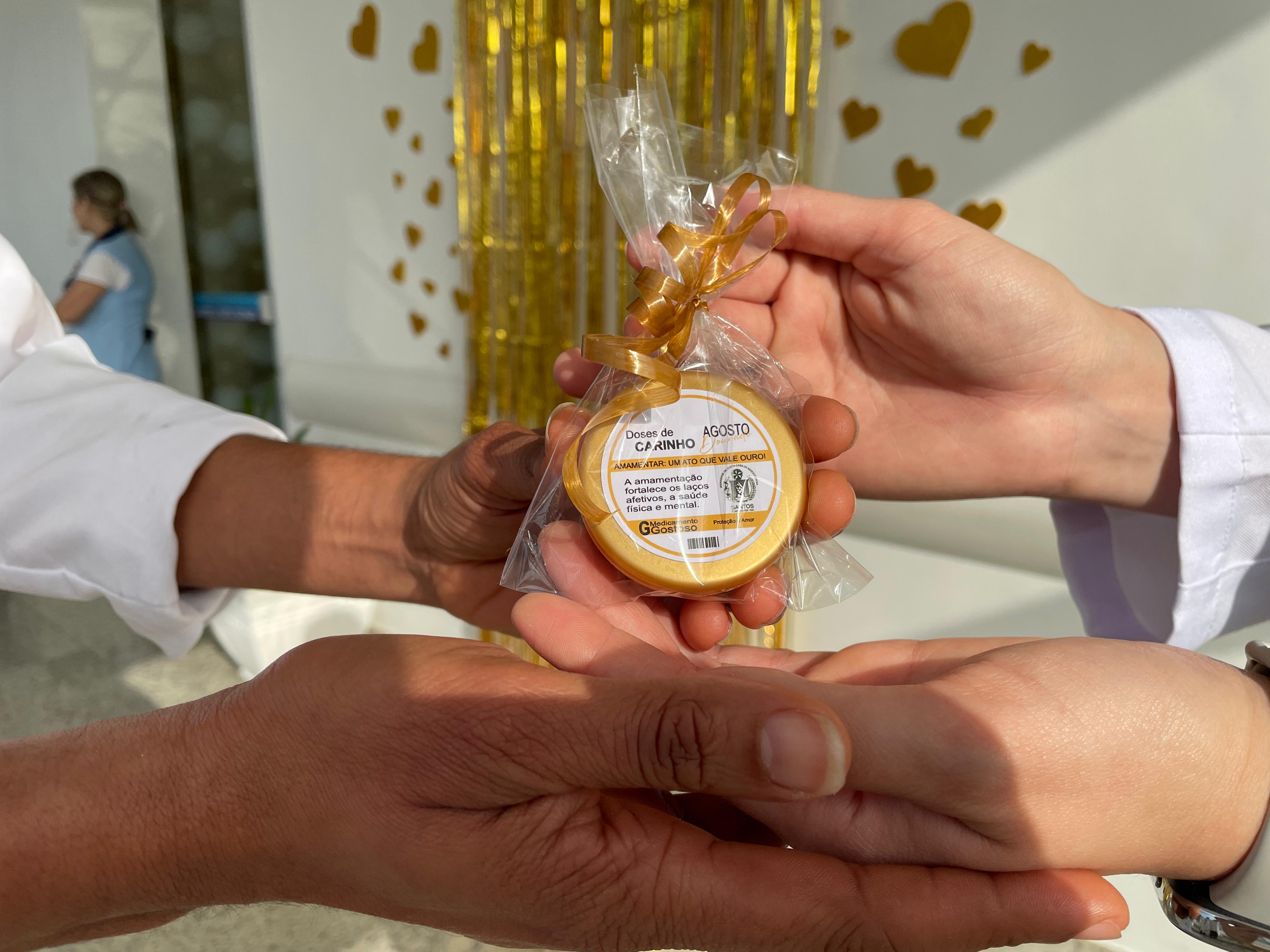 As mamães e colaboradores também receberam a presença do Alexandre Camilo, da Ação do Coração, que entregou muitos corações recheados de amor.