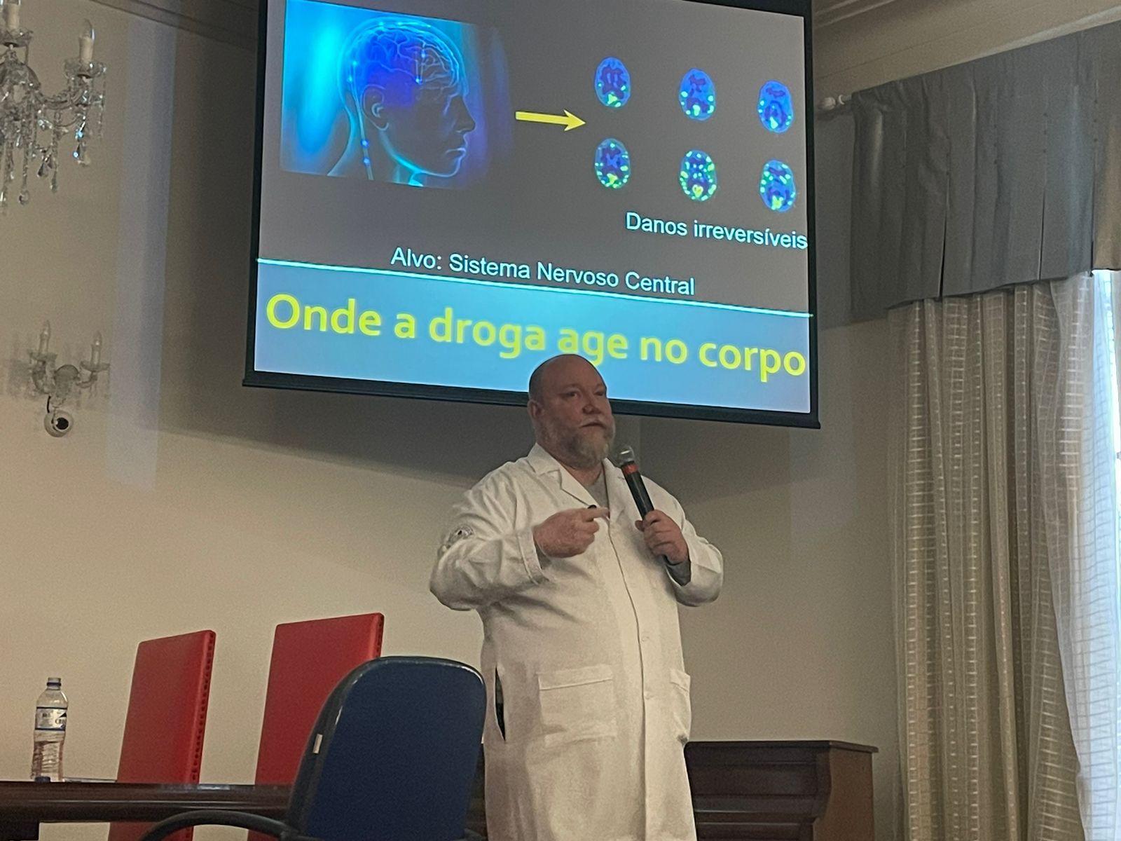 O psicólogo da Santa Casa, Dr. Osmar Versuti, especialista no tema, de maneira abrangente exemplificou muitas situações e casos, alertando quanto aos riscos das drogas, mascaradas como opções de lazer ou relaxamento, e que aprisionam as pessoas de modo silencioso inicialmente.