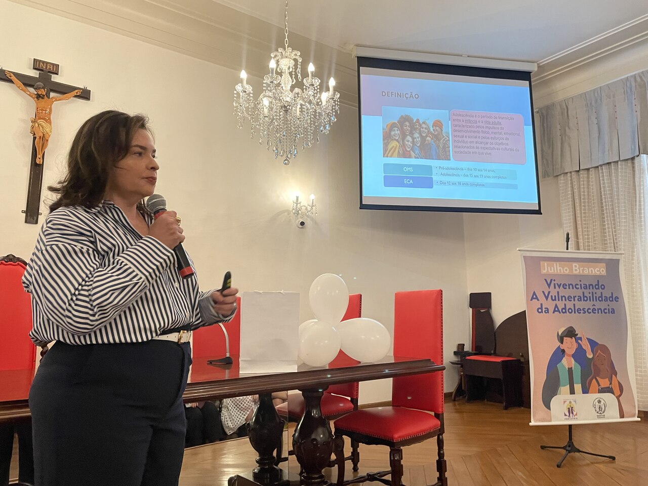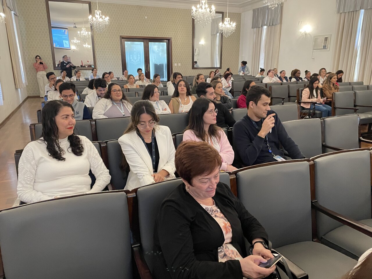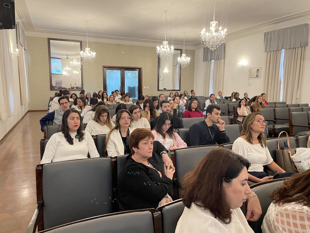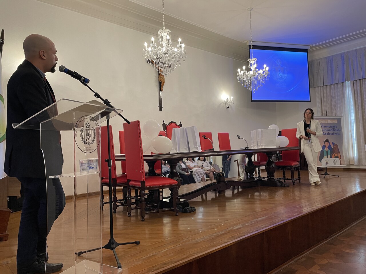 Na tarde do dia 31 de julho de 2024, o Consistório da Santa Casa de Santos ficou lotado com profissionais de saúde para assistirem painéis sobre o Julho Branco - Mês que debate a Vulnerabilidade na Adolescência. O Serviço de Pediatria da Irmandade organizou o evento que contou com cerca de 127 inscritos.