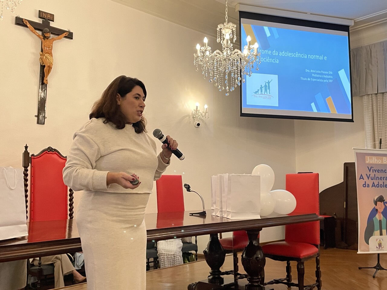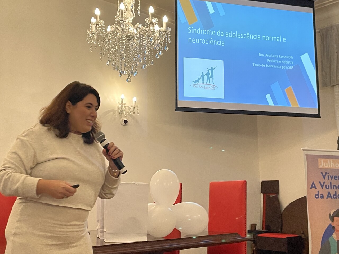 Para a abertura do primeiro painel a médica pediatra e hebiatra (Especialista em Adolescentes), Dra. Ana Luiza Passos Dib, abordou o tema: “Síndrome da adolescência normal - Neurociência relacionada ao adolescente”. Dra. Ana Dib explicou o processo de transição da adolescência até a fase adulta, no âmbito biológico, psicológico e social. “O cérebro está em processo de desenvolvimento e o adolescente tem dificuldade de reconhecer os perigos e isso o torna vulnerável”, destaca.