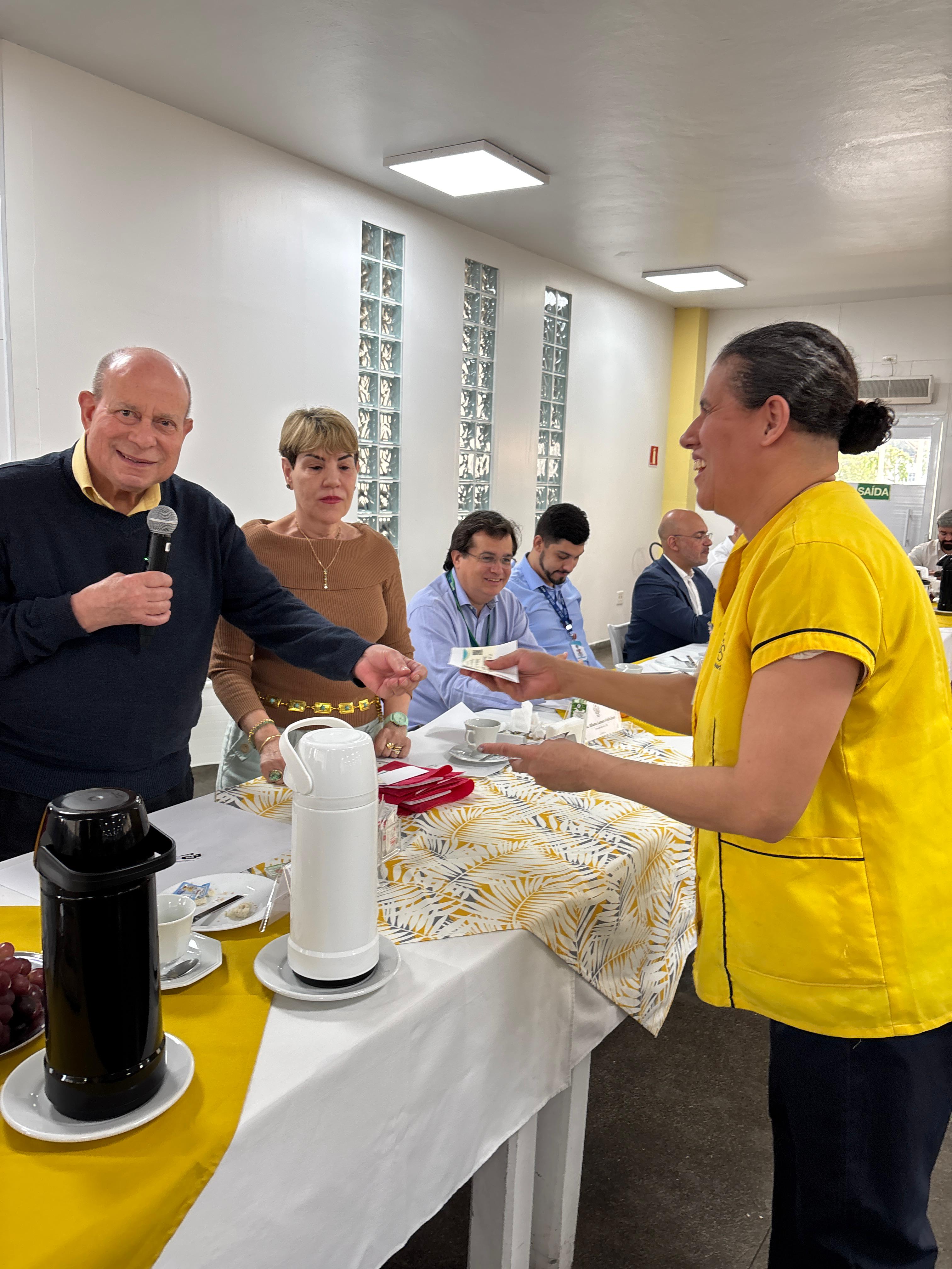 A segunda edição de 2025 do “Café com o Provedor” aconteceu na manhã do dia 12 de setembro de 2025, e reuniu os colaboradores aniversariantes do período de abril a agosto deste ano. Mais de 300 pessoas marcaram presença no refeitório dos funcionários.