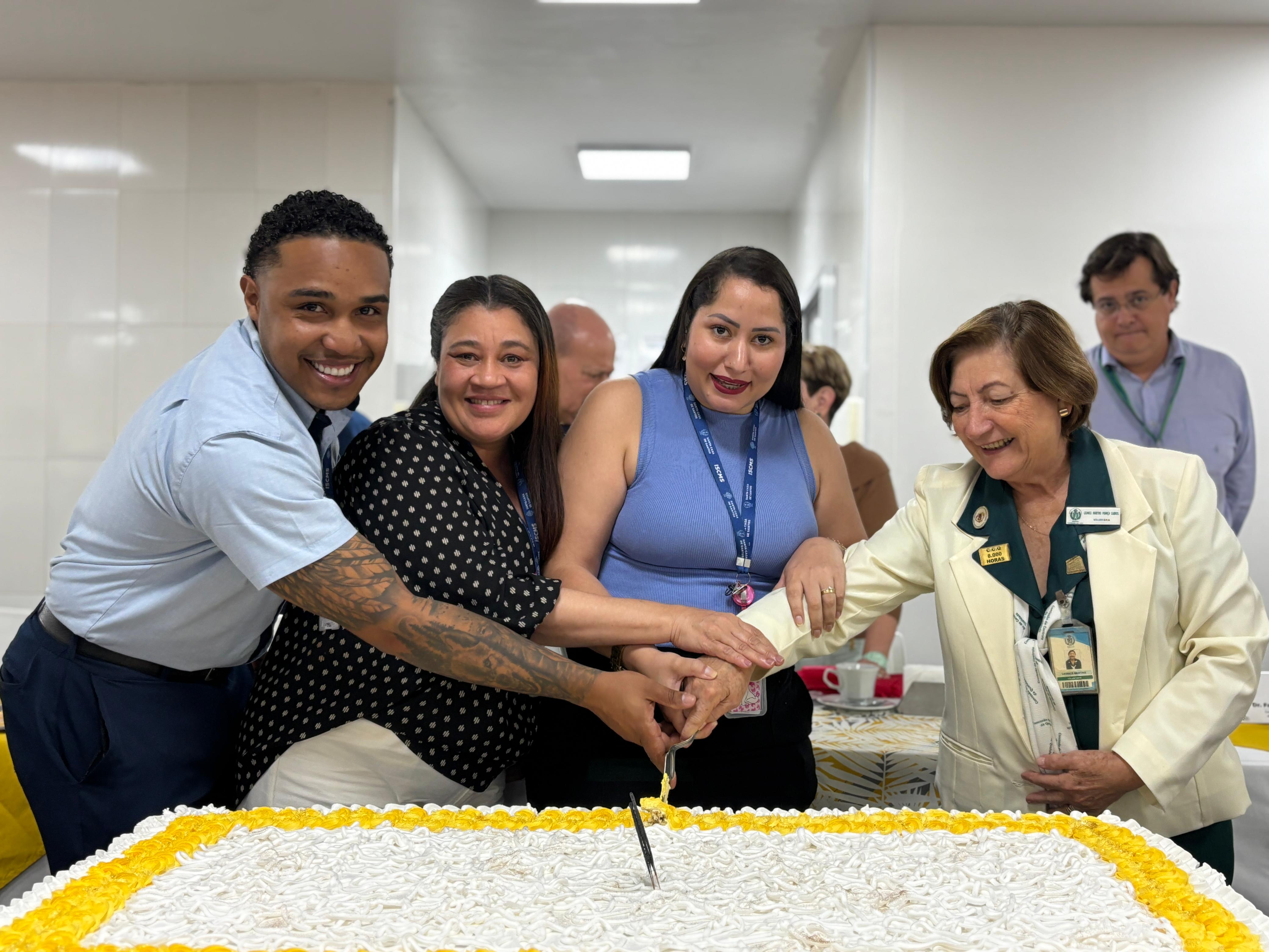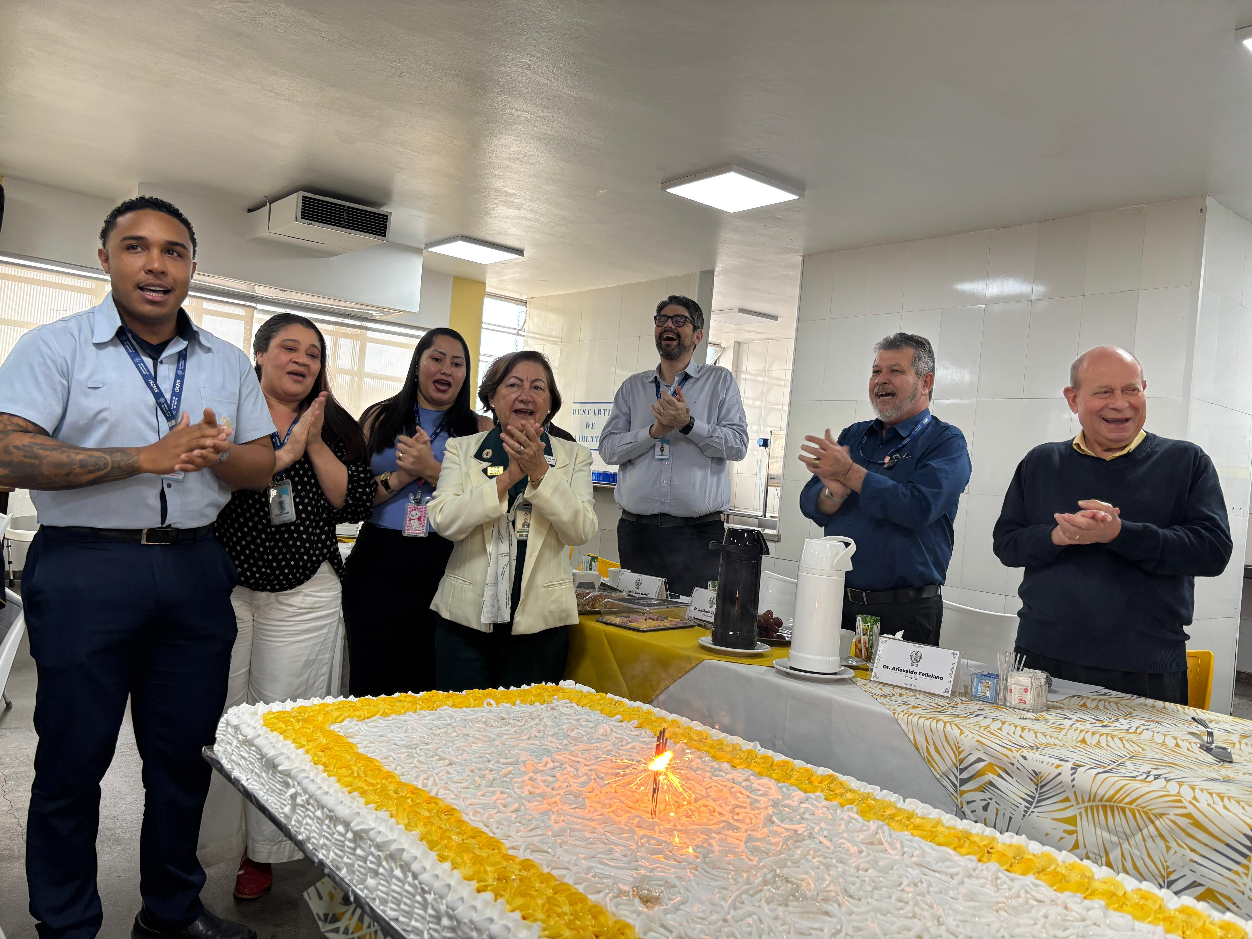 O evento foi finalizado com todos cantando o tradicional “Parabéns para você” e a distribuição do bolo confeitado, feito pelo Departamento de Nutrição e Dietética especialmente para os aniversariantes.