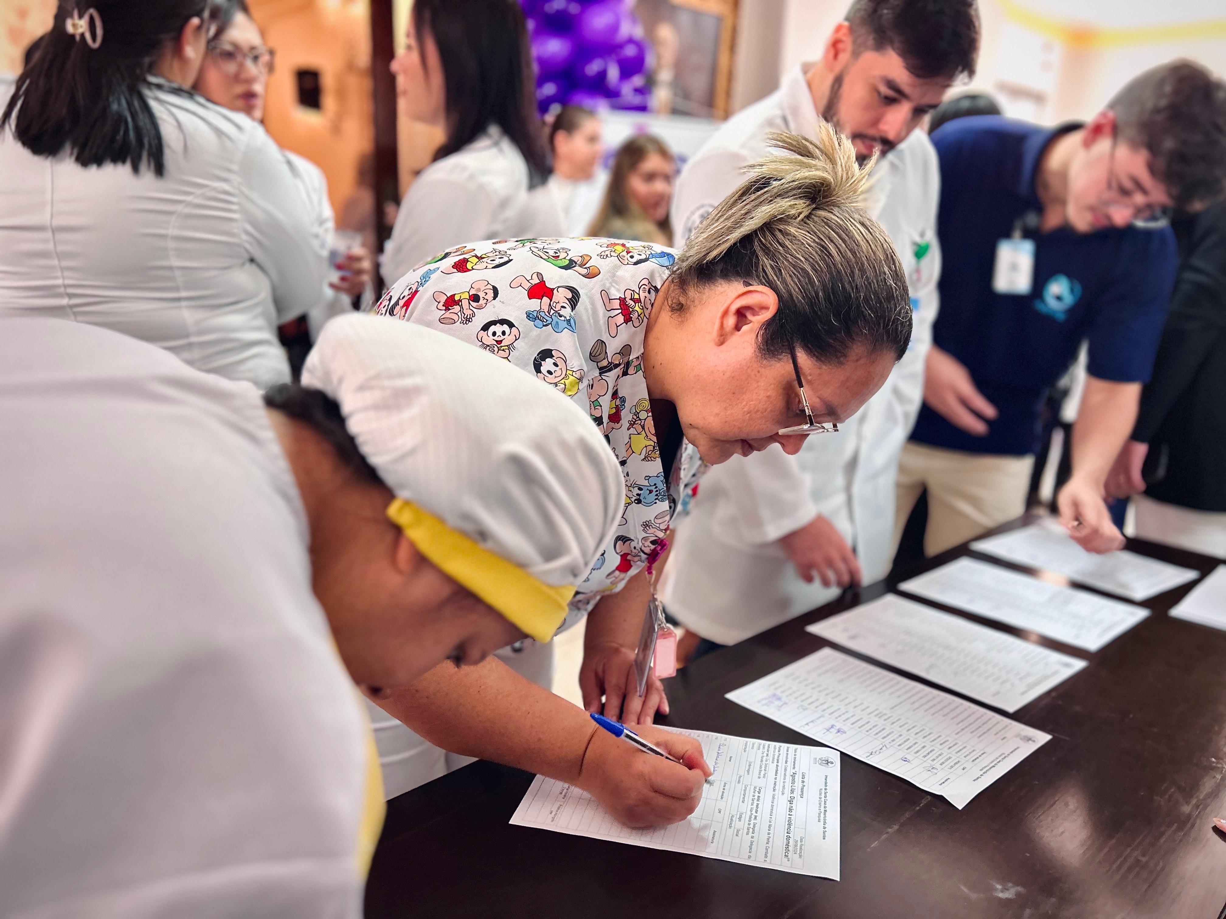 No dia 29/8, a Santa Casa de Santos promoveu um evento sobre violência contra a mulher, em alusão à campanha Agosto Lilás, que utiliza este mês como referência para criar ações de conscientização sobre o tema por meio de agentes públicos e meios de comunicação disponíveis. O evento “Agosto Lilás – Diga não à violência doméstica! ” foi organizado pelo Setor de Medicina do Trabalho e Centro Integrado de Humanização da instituição e contou com a presença de 153 participantes inscritos.