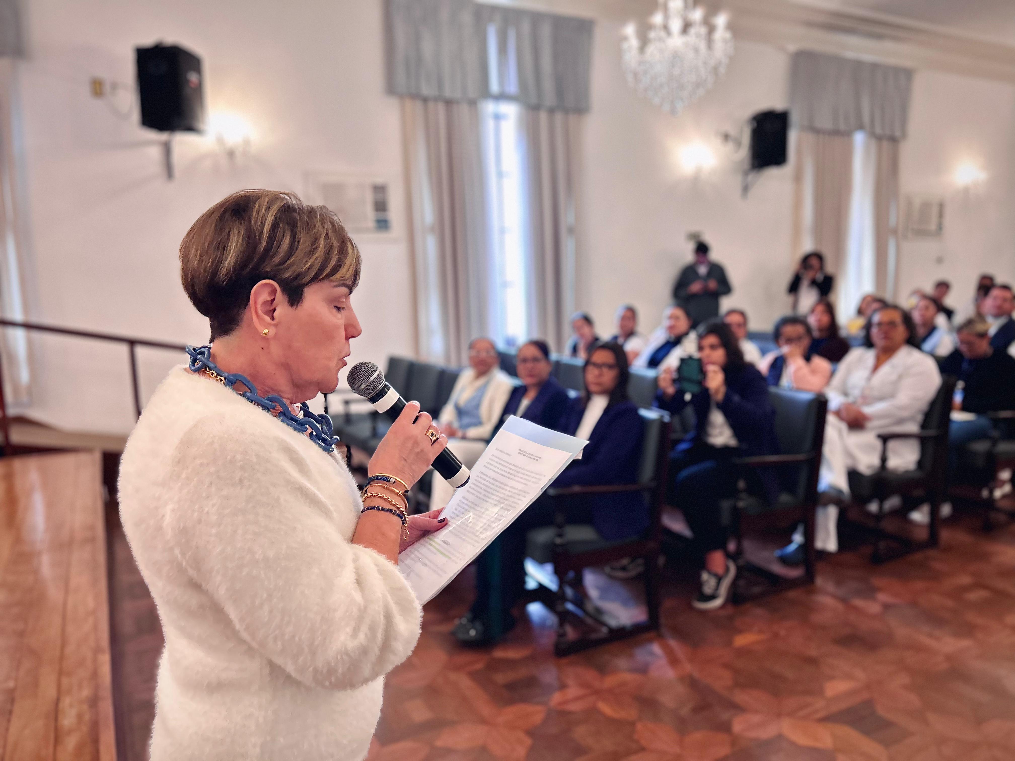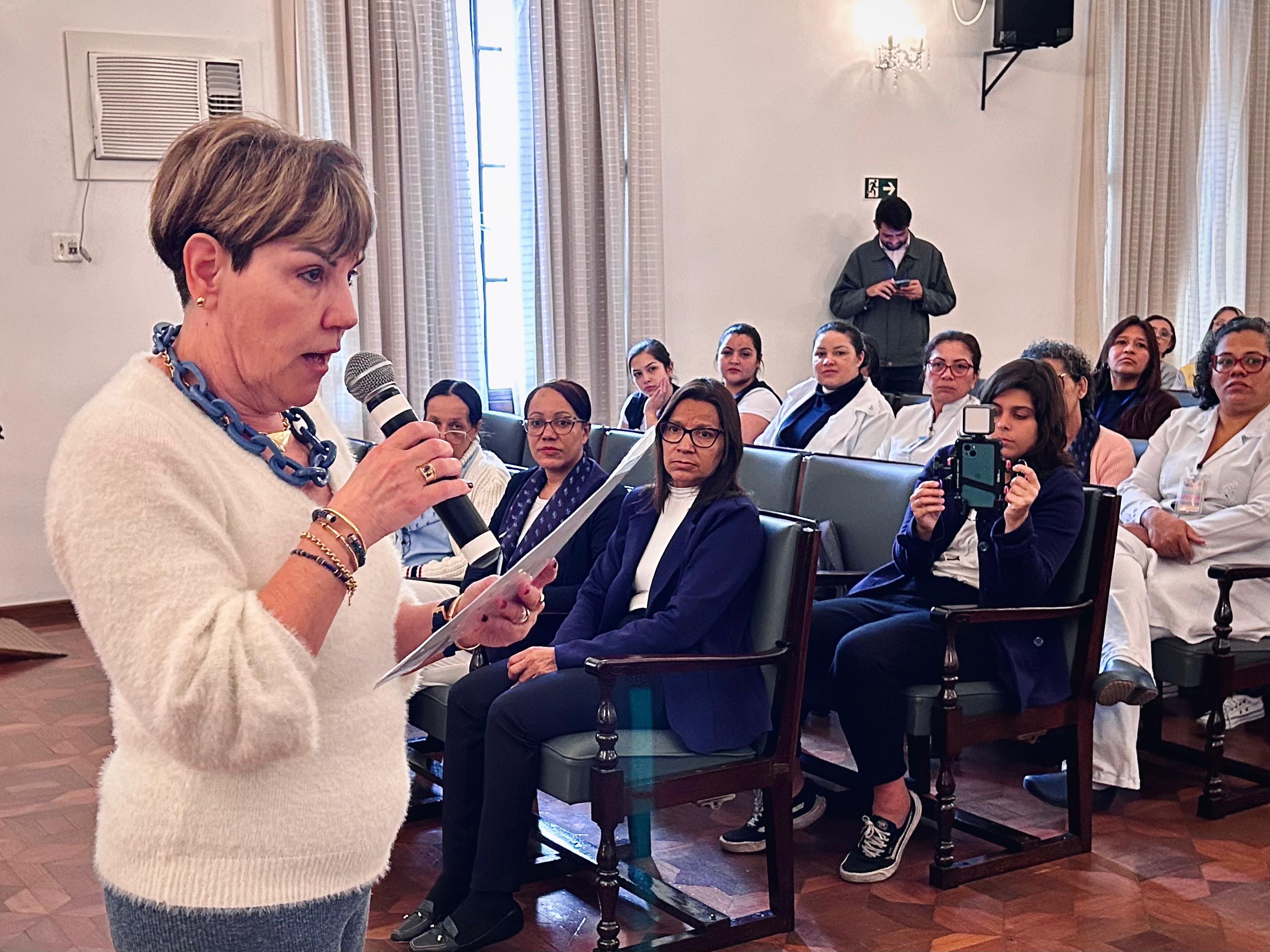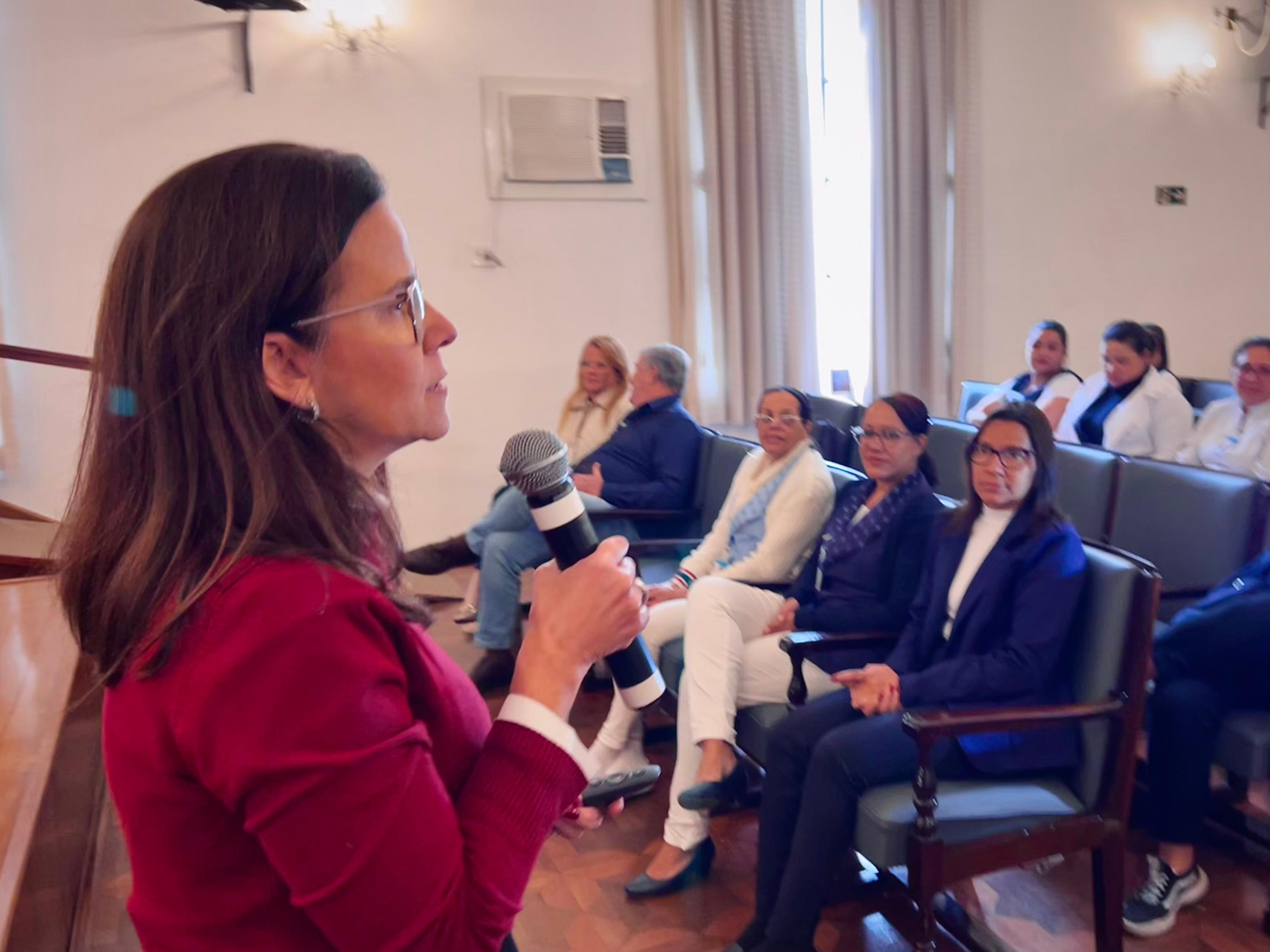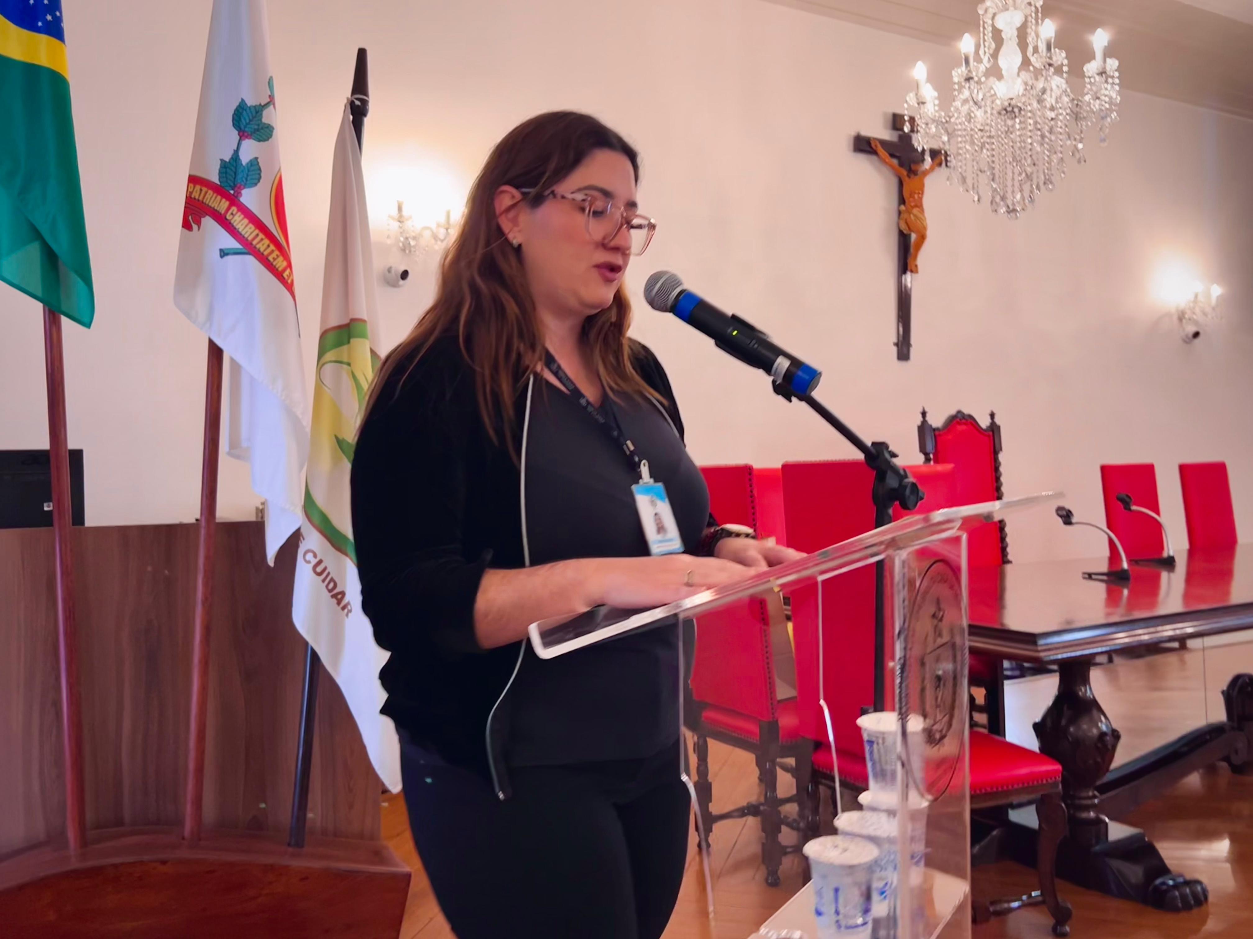 A abertura foi realizada pela presidente da Comissão de Controle da Qualidade, Eliana Lopes Feliciano, esposa do provedor Ariovaldo Feliciano, que destacou a importância de realizar um evento sobre o assunto, afinal, 80% do quadro funcional da Santa Casa de Santos é formado por mulheres. Eliana também enalteceu a presença da delegada Drª. Deborah Perez Lázaro e da vice-prefeita de Santos, Drª. Renata Bravo, das quais se considera grande admiradora do trabalho que realizam em defesa dos direitos das mulheres.