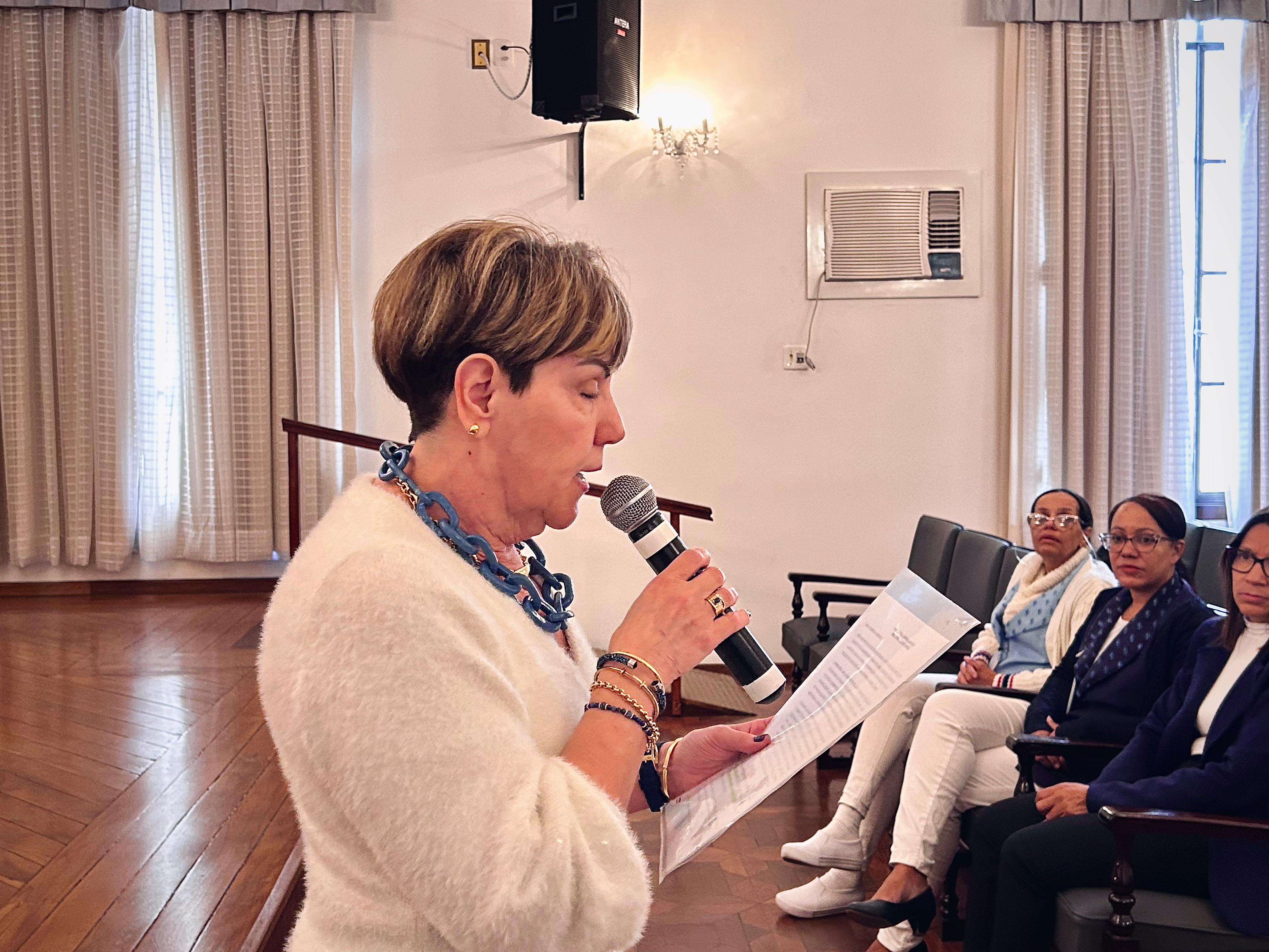 A vice-prefeita também falou sobre a 1ª Vara de Combate à Violência Doméstica em Santos, que é um marco para proteção das mulheres santistas, dando mais agilidade processual e acesso à rede que o município oferece às vítimas, além de mais atenção à Lei Maria da Penha. Ela também apresentou quais são as portas de entrada das mulheres vítimas de violência: